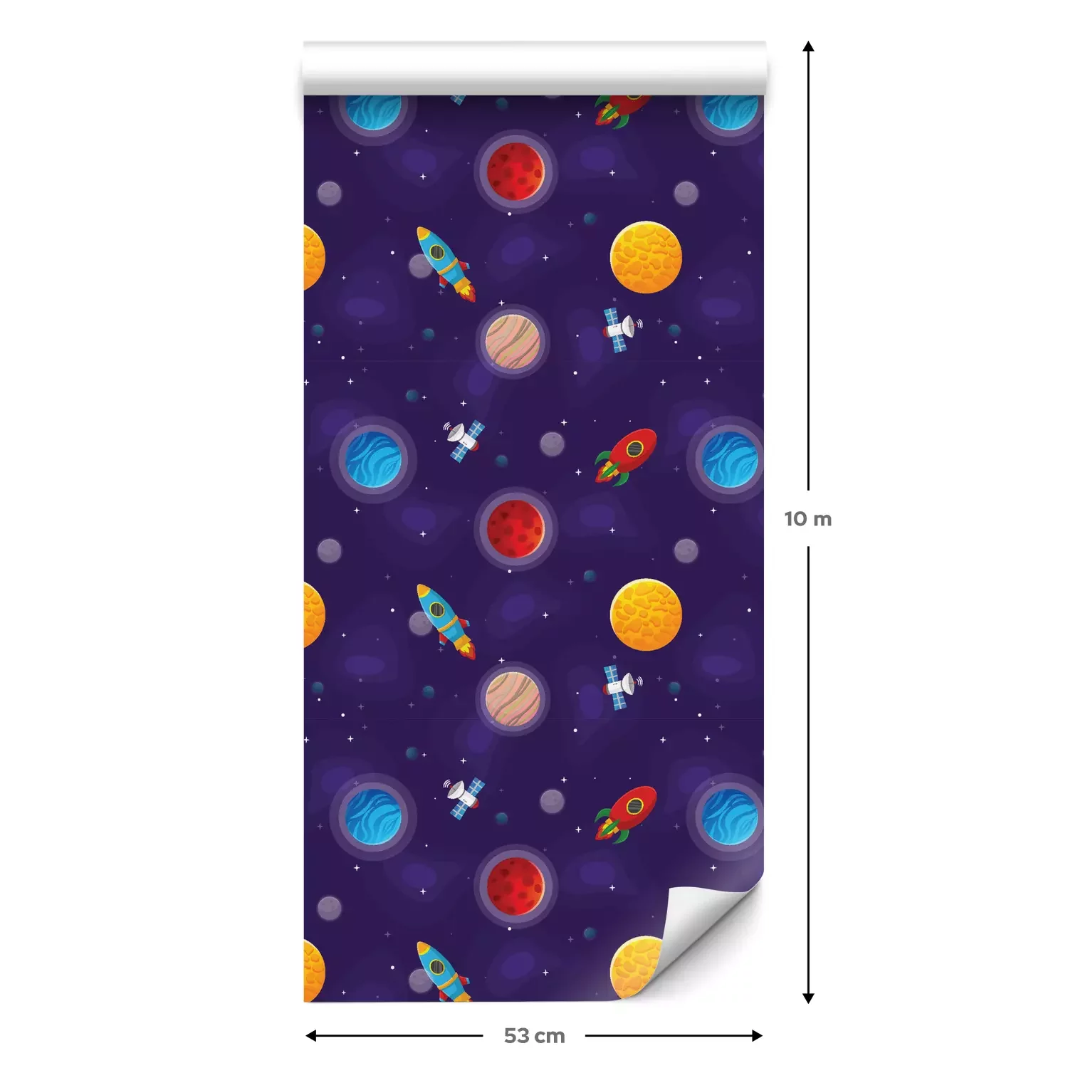 Een standaardrol behang heeft een afmeting van 0,53 m x 10 m, wat voldoende is om ongeveer 5 m² muur te bedekken.