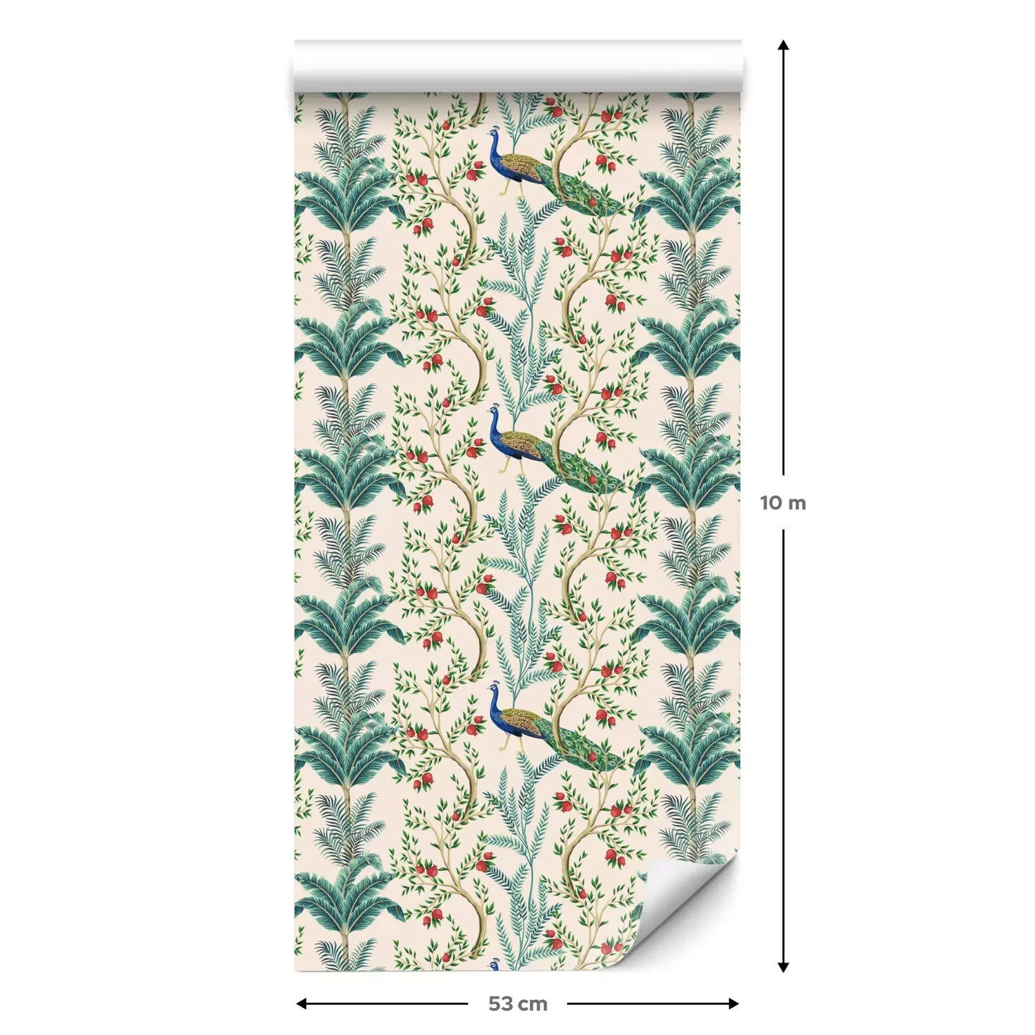 Een standaardrol behang heeft een afmeting van 0,53 m x 10 m, wat voldoende is om ongeveer 5 m² muur te bedekken.