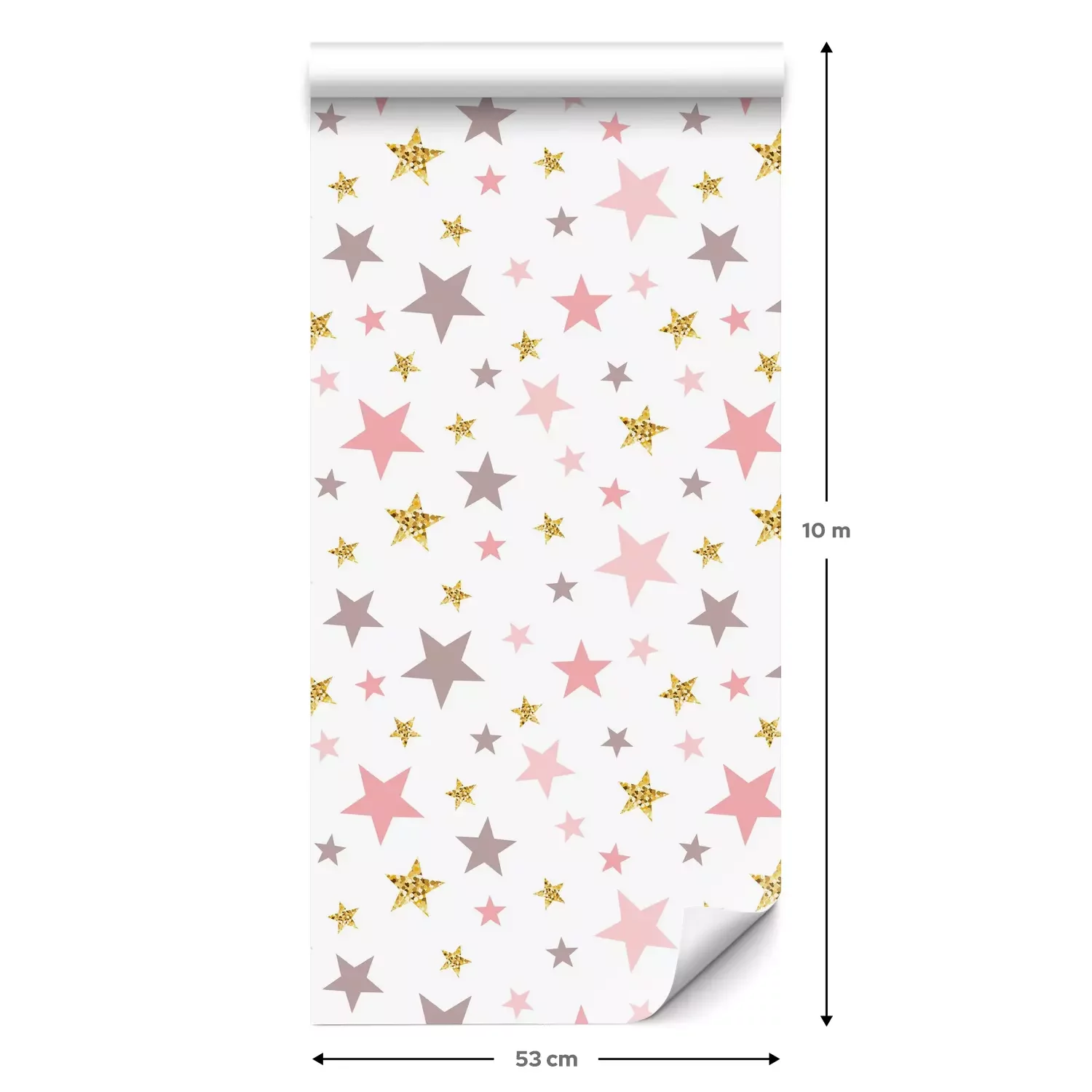 Een standaardrol behang heeft een afmeting van 0,53 m x 10 m, wat voldoende is om ongeveer 5 m² muur te bedekken.