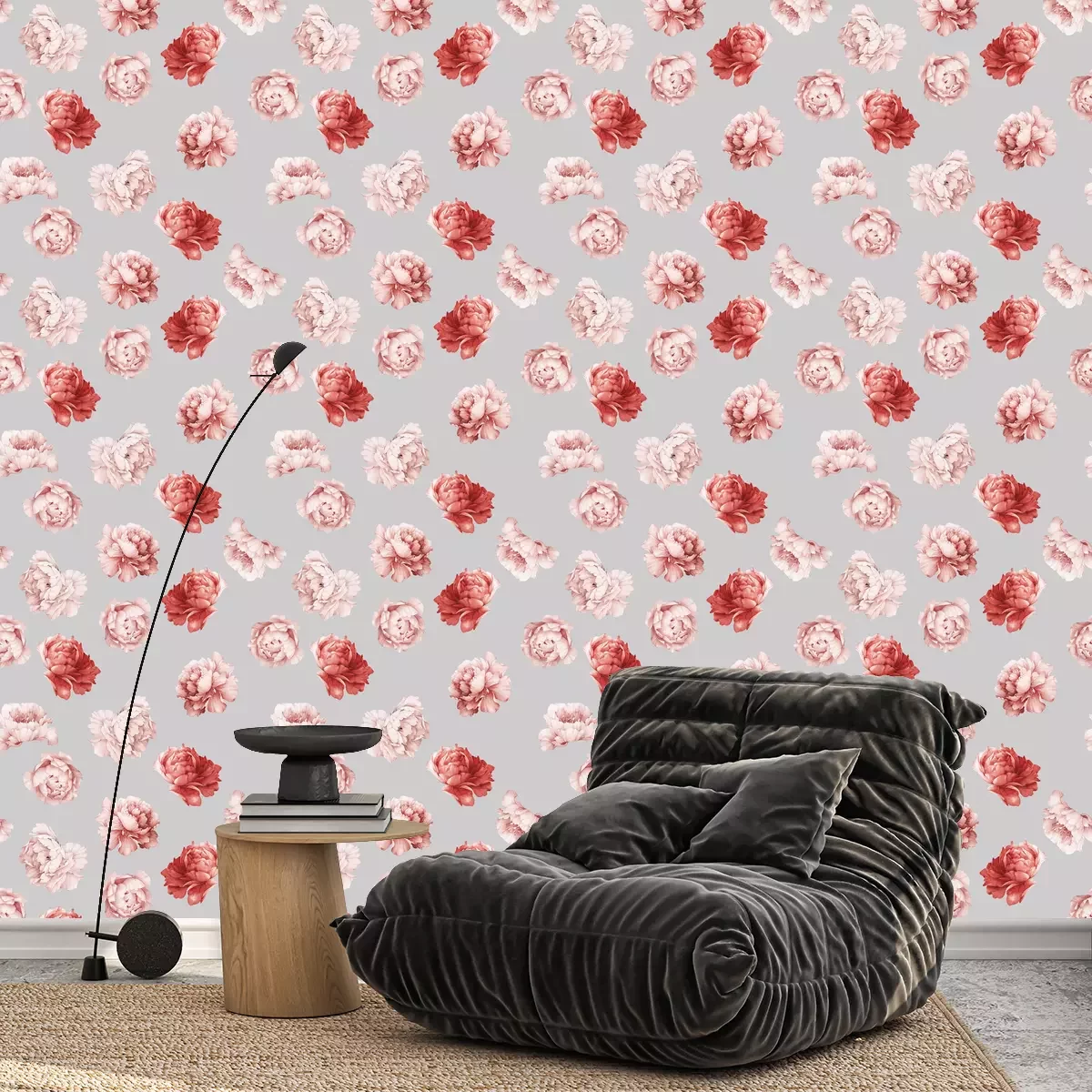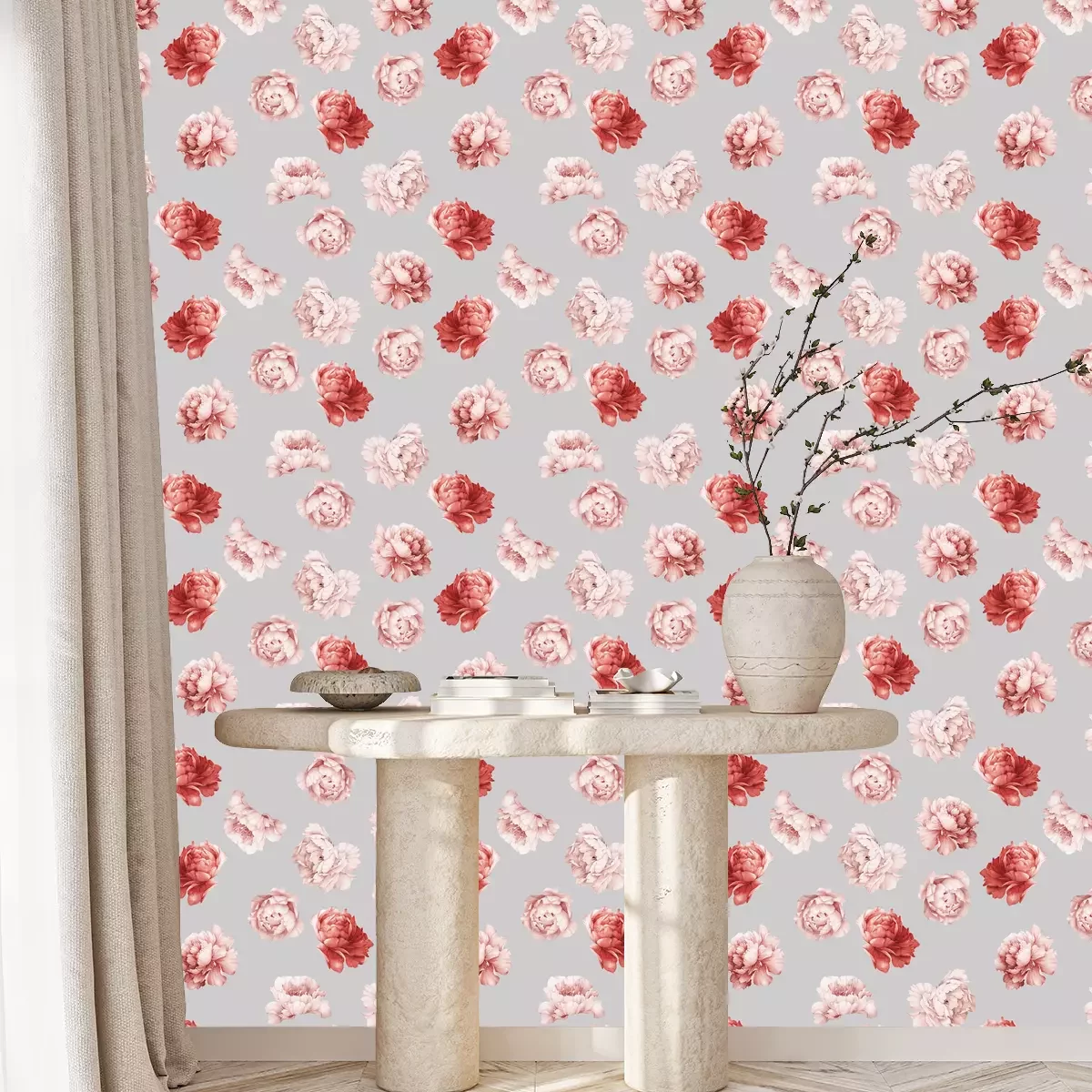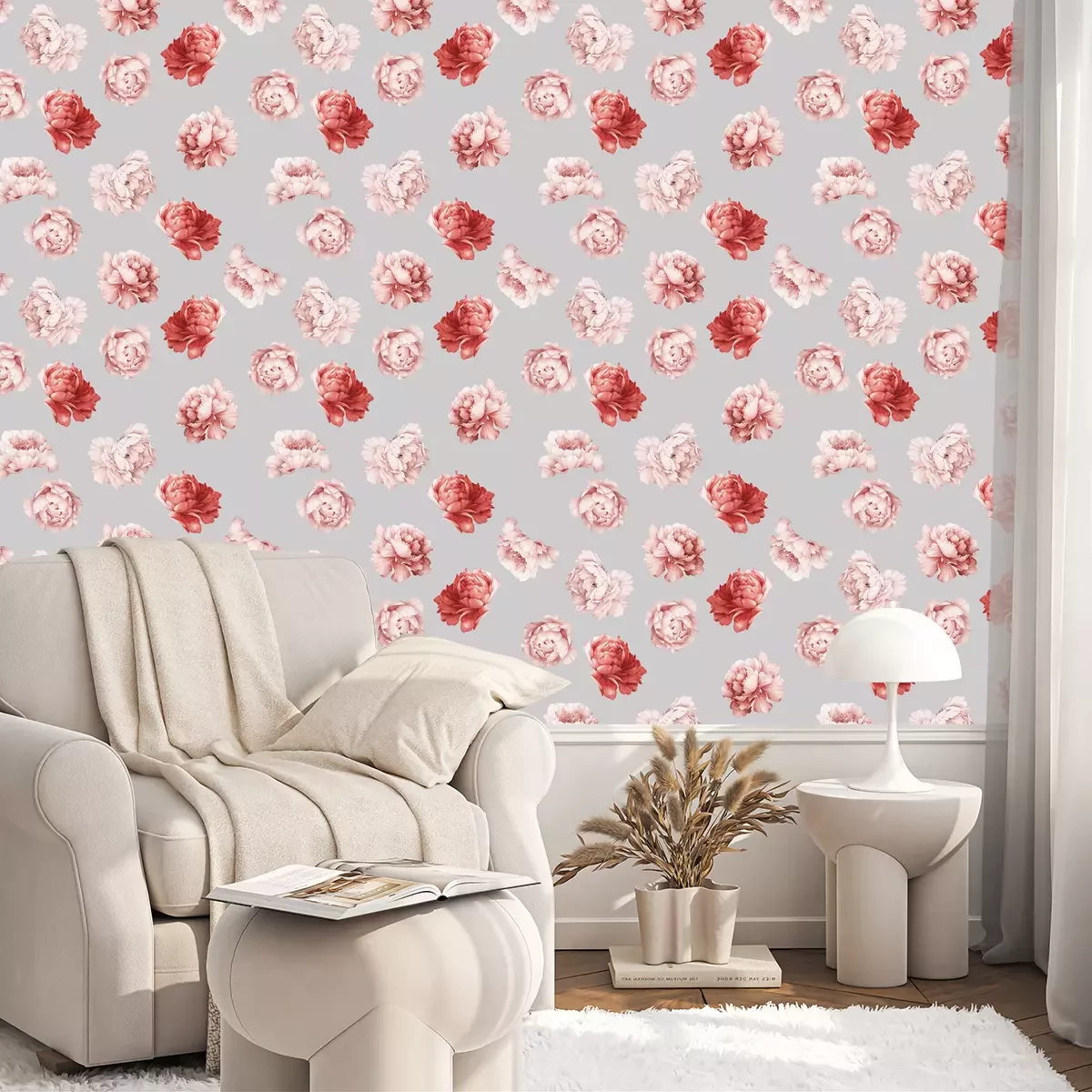 Patroon met lichte pioenrozenFotobehang