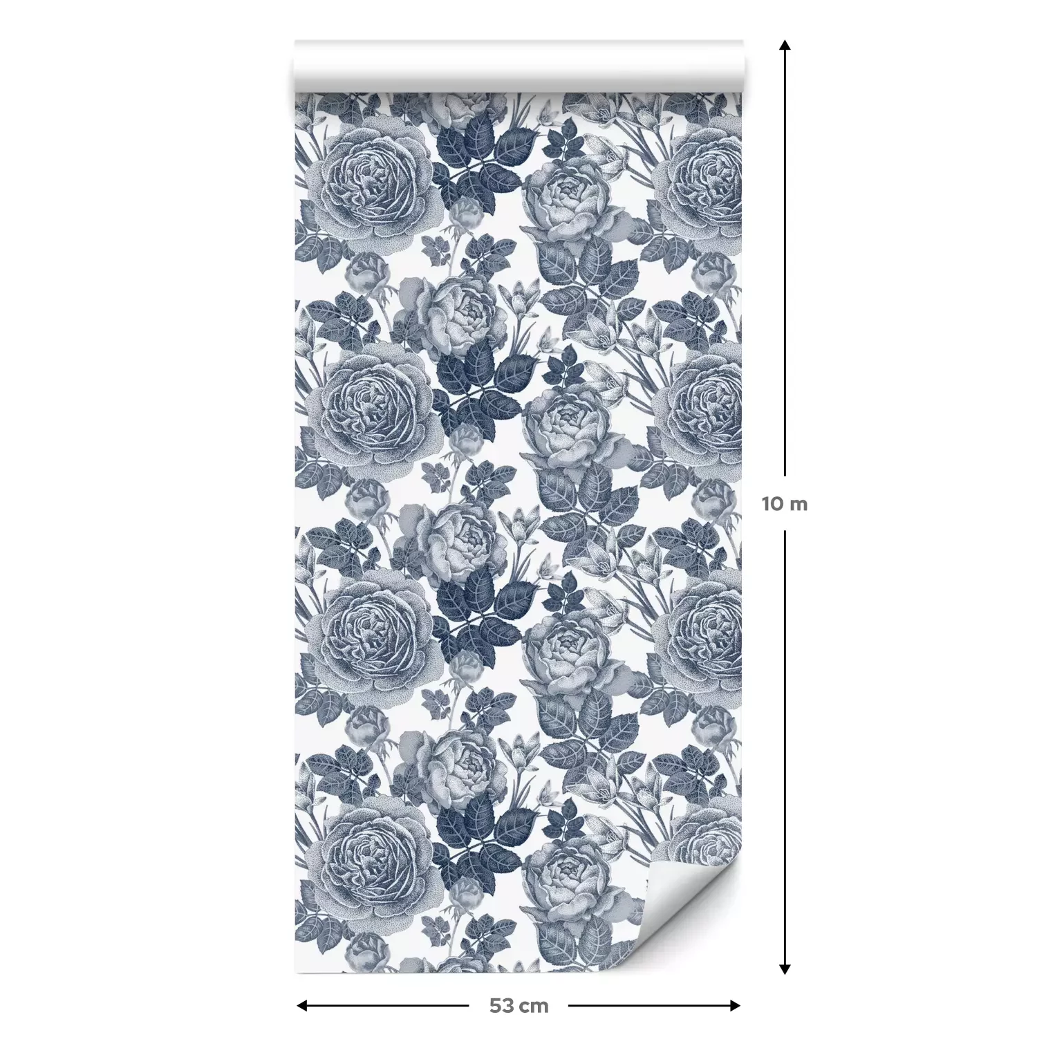 Een standaardrol behang heeft een afmeting van 0,53 m x 10 m, wat voldoende is om ongeveer 5 m² muur te bedekken.