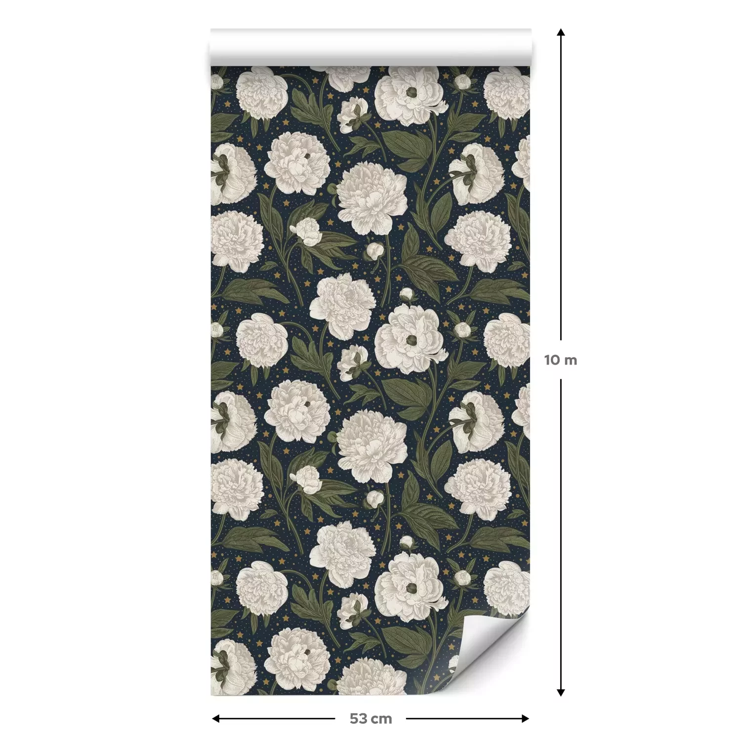 Een standaardrol behang heeft een afmeting van 0,53 m x 10 m, wat voldoende is om ongeveer 5 m² muur te bedekken.