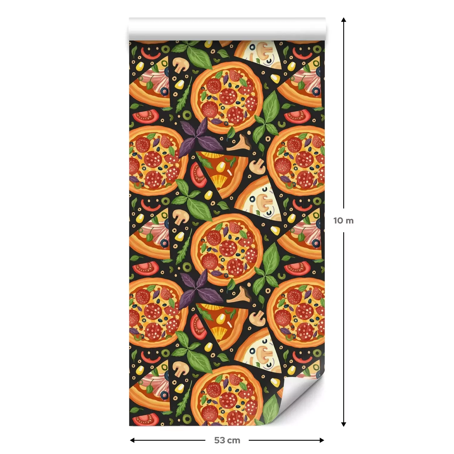 Een standaardrol behang heeft een afmeting van 0,53 m x 10 m, wat voldoende is om ongeveer 5 m² muur te bedekken.