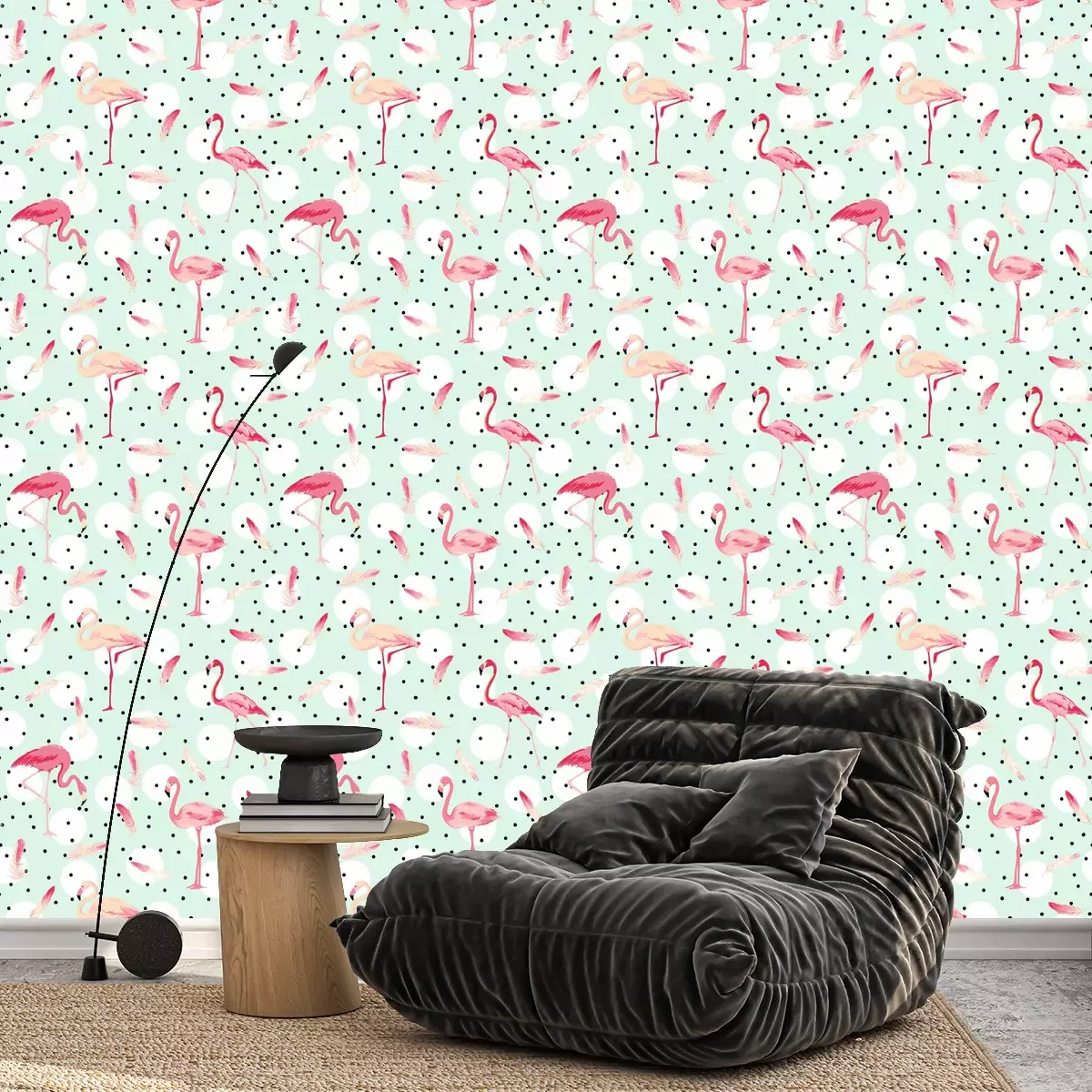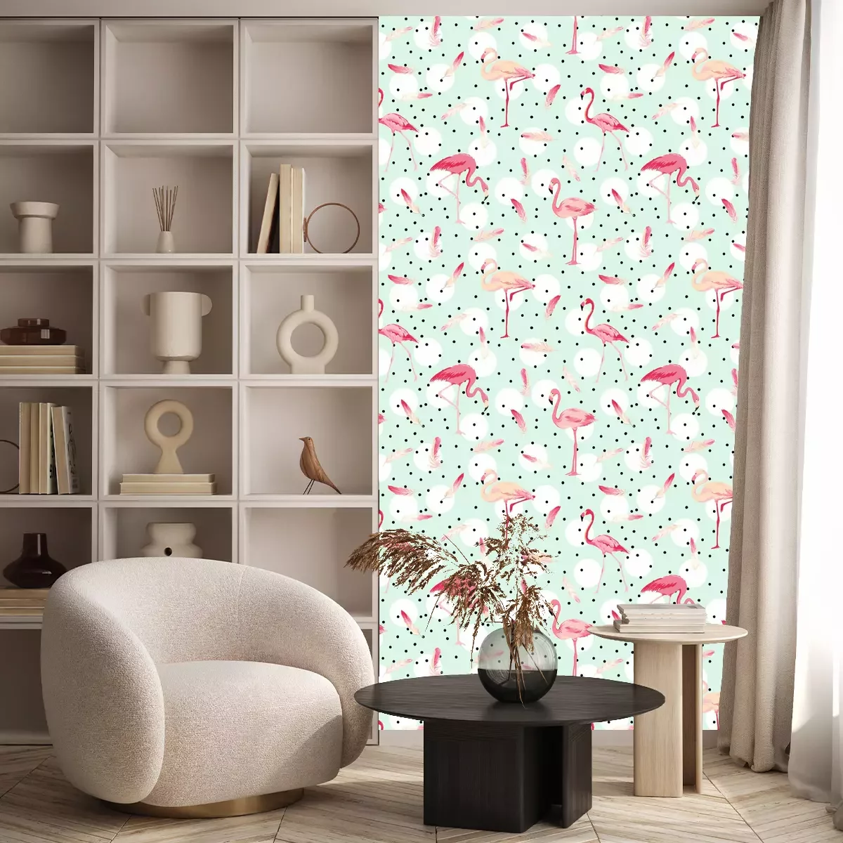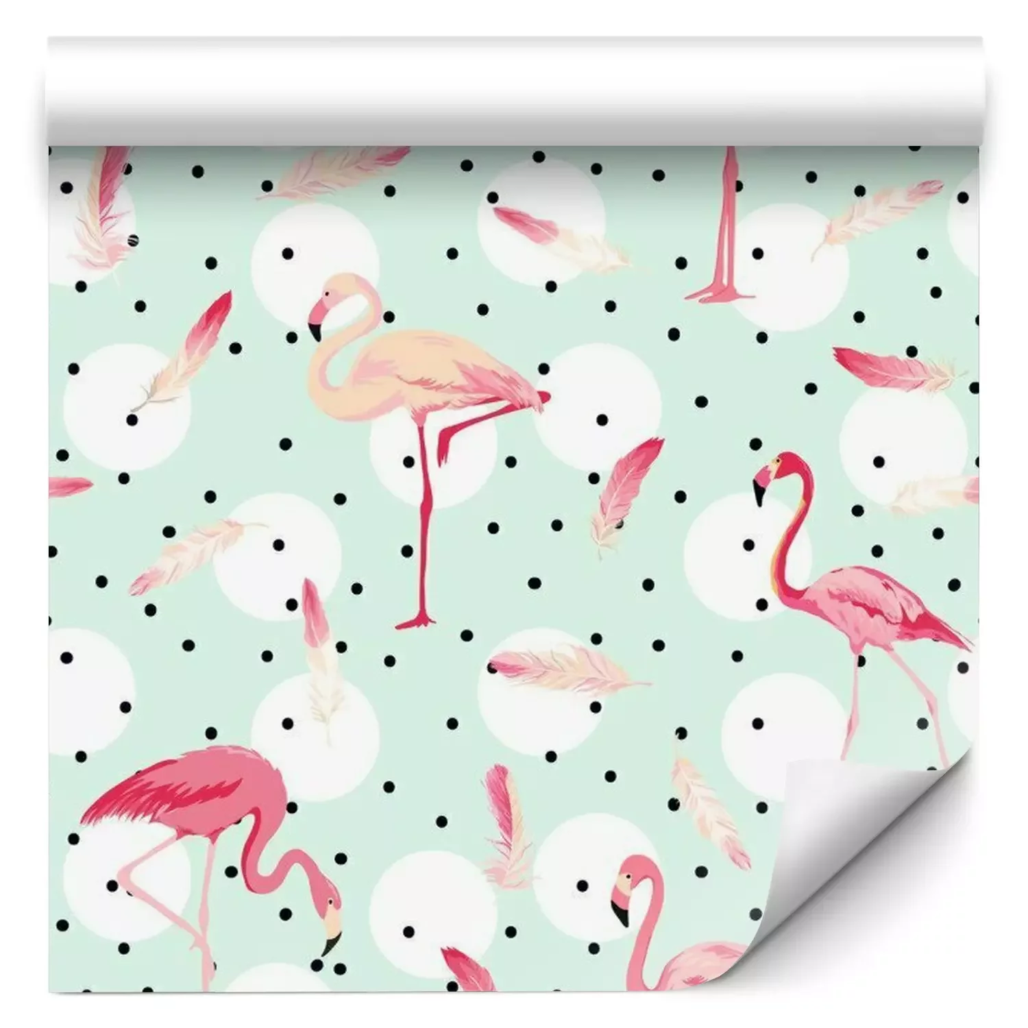 Flamingo's op bloemenkransenBehang