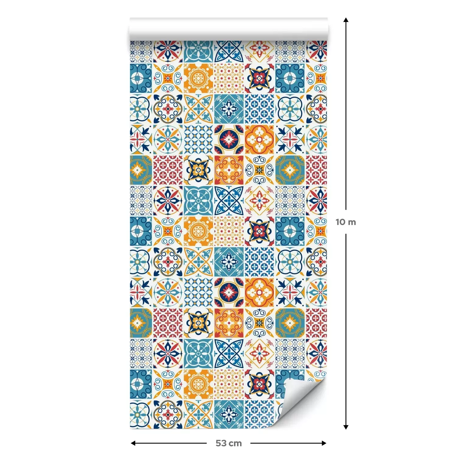 Een standaardrol behang heeft een afmeting van 0,53 m x 10 m, wat voldoende is om ongeveer 5 m² muur te bedekken.
