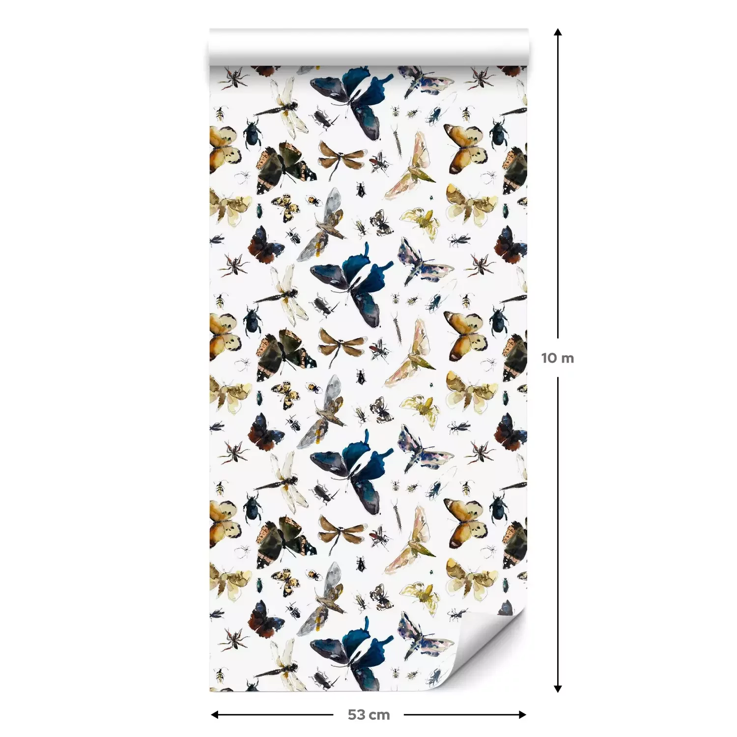 Een standaardrol behang heeft een afmeting van 0,53 m x 10 m, wat voldoende is om ongeveer 5 m² muur te bedekken.