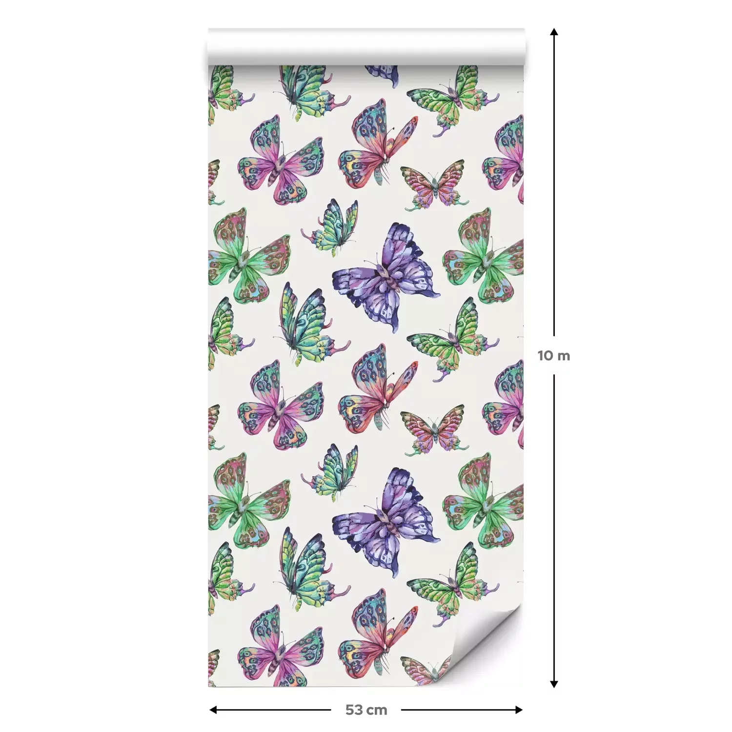 Een standaardrol behang heeft een afmeting van 0,53 m x 10 m, wat voldoende is om ongeveer 5 m² muur te bedekken.
