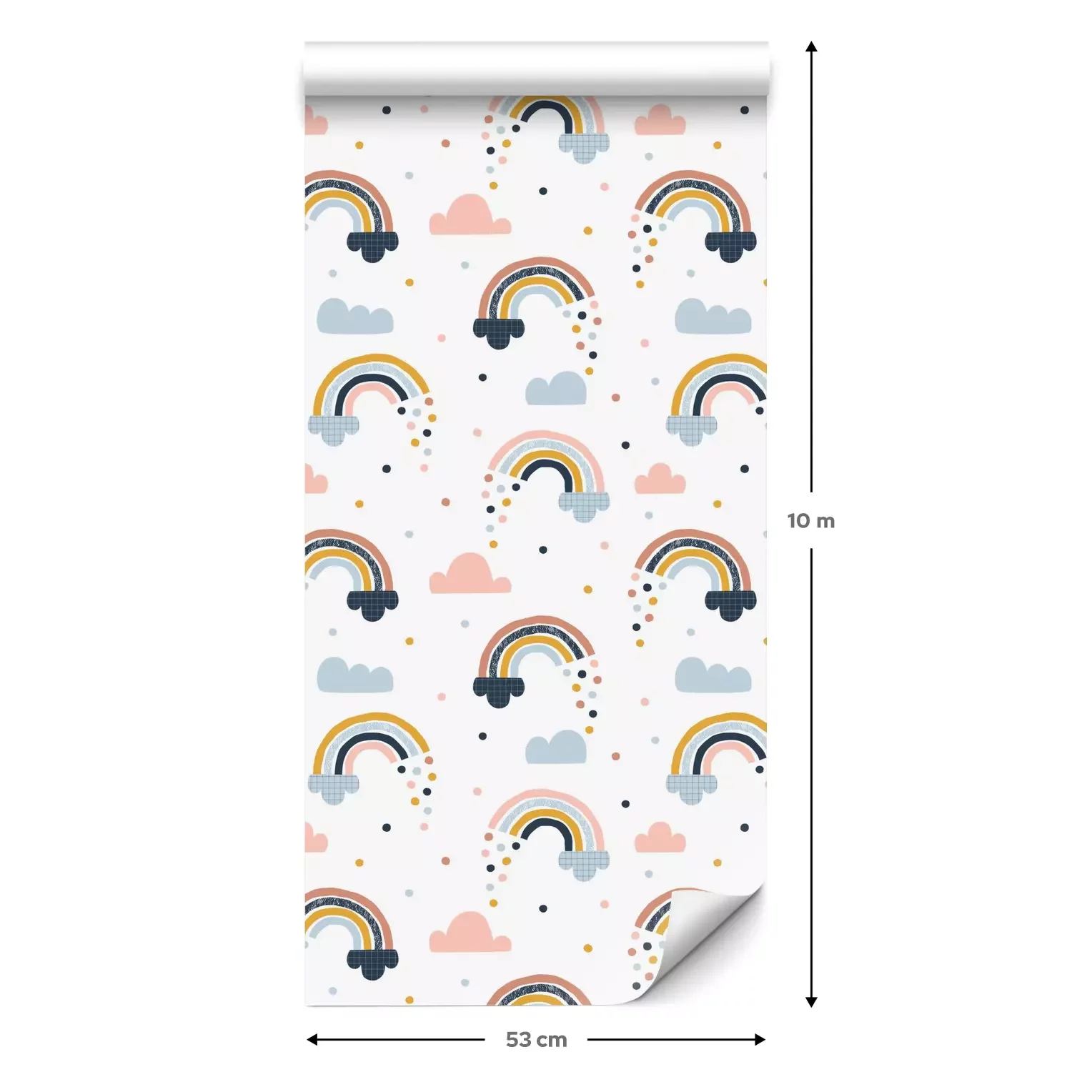 Een standaardrol behang heeft een afmeting van 0,53 m x 10 m, wat voldoende is om ongeveer 5 m² muur te bedekken.
