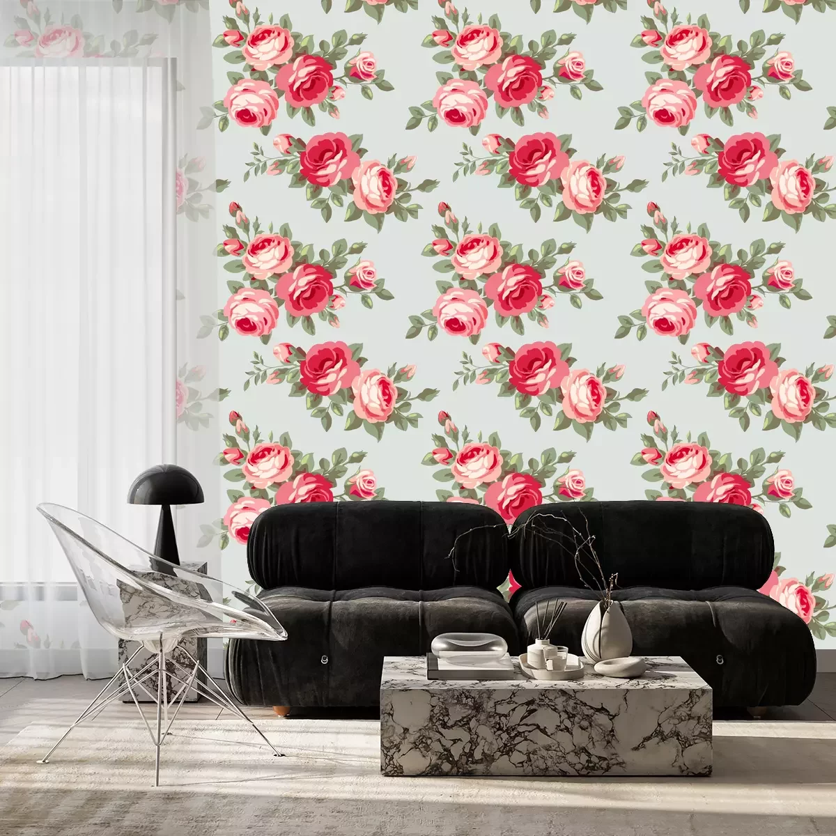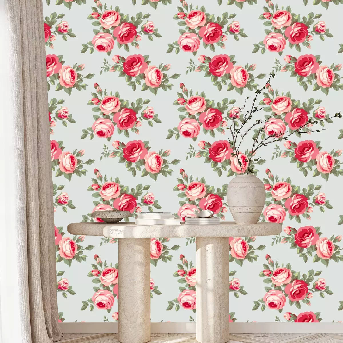 Retro ontwerp met rozenBehang