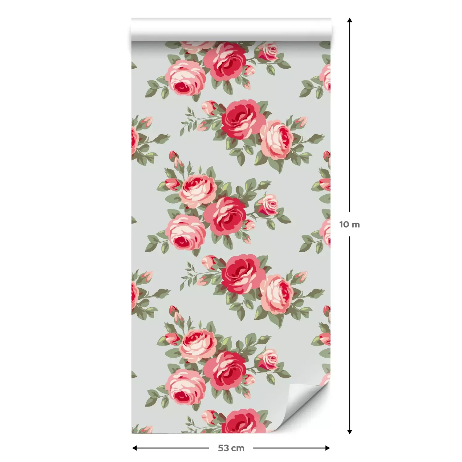 Een standaardrol behang heeft een afmeting van 0,53 m x 10 m, wat voldoende is om ongeveer 5 m² muur te bedekken.