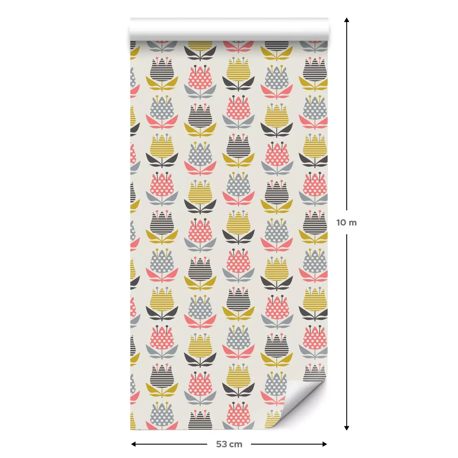 Een standaardrol behang heeft een afmeting van 0,53 m x 10 m, wat voldoende is om ongeveer 5 m² muur te bedekken.