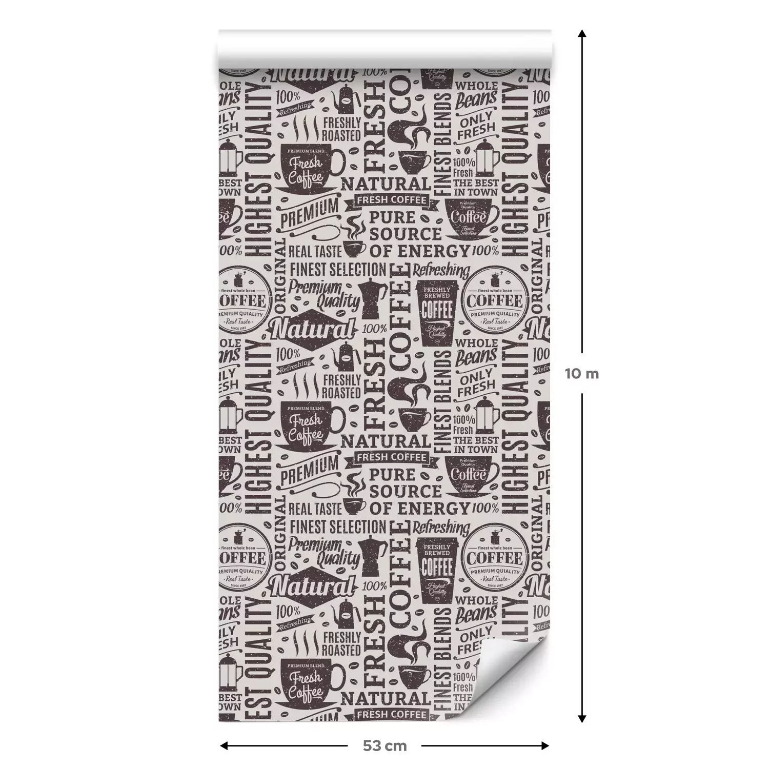 Een standaardrol behang heeft een afmeting van 0,53 m x 10 m, wat voldoende is om ongeveer 5 m² muur te bedekken.