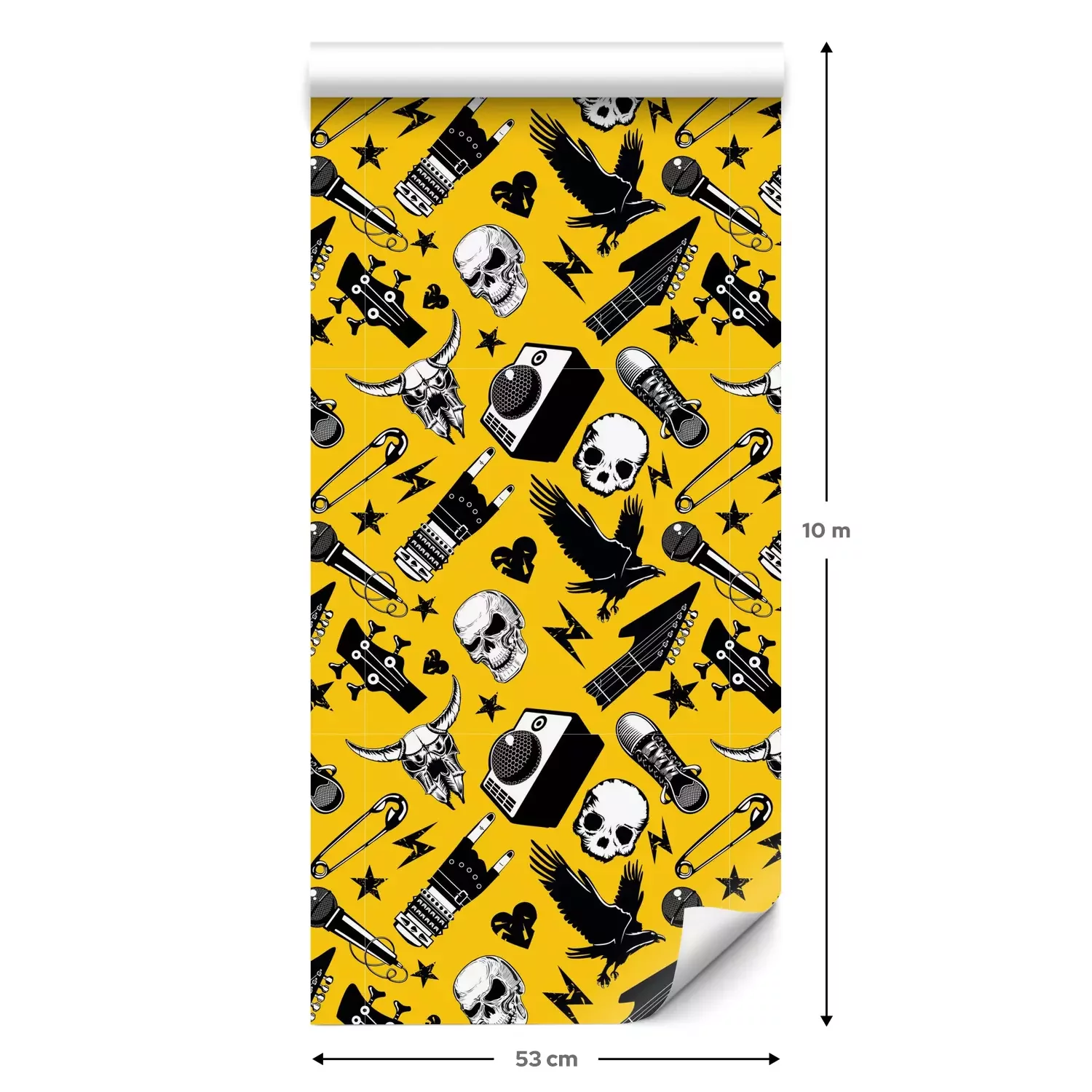 Een standaardrol behang heeft een afmeting van 0,53 m x 10 m, wat voldoende is om ongeveer 5 m² muur te bedekken.