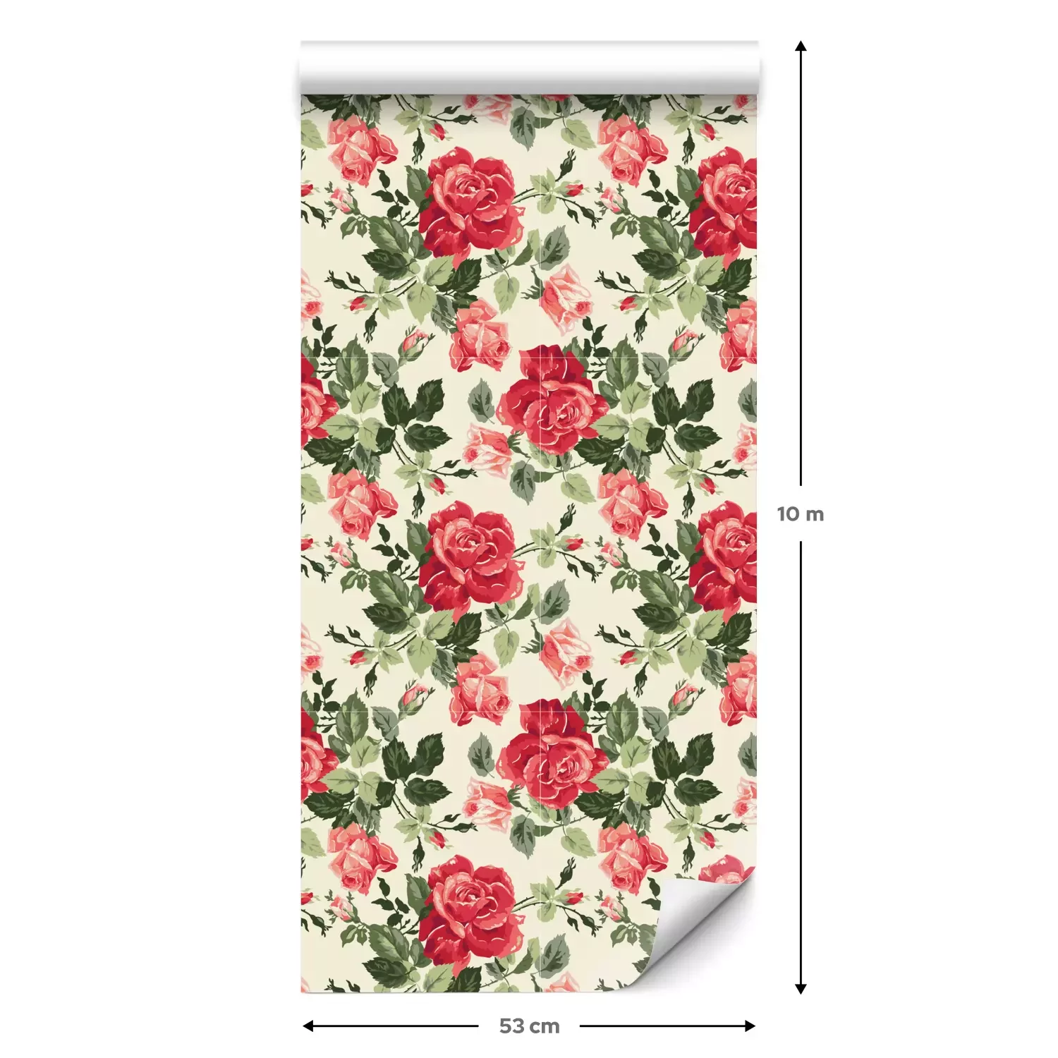Een standaardrol behang heeft een afmeting van 0,53 m x 10 m, wat voldoende is om ongeveer 5 m² muur te bedekken.