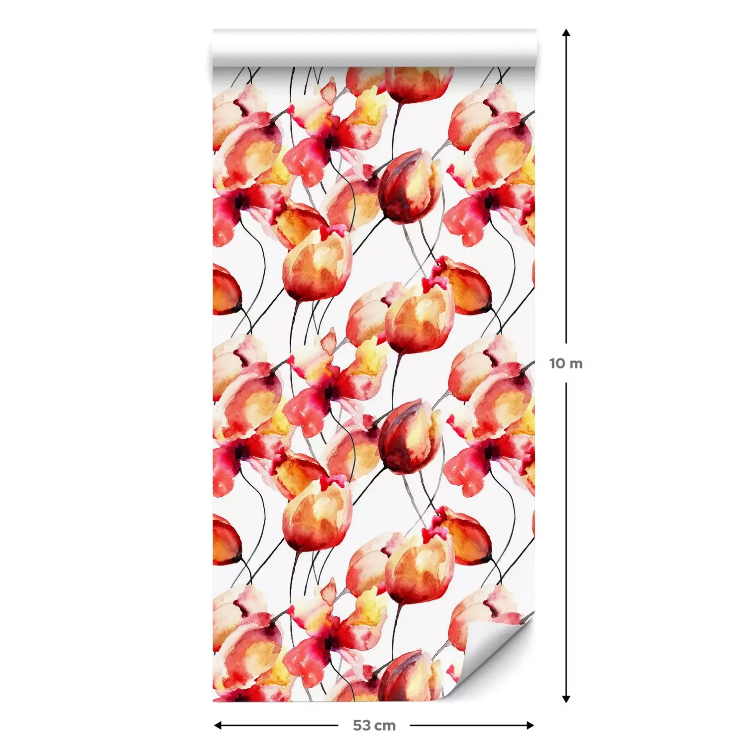 Een standaardrol behang heeft een afmeting van 0,53 m x 10 m, wat voldoende is om ongeveer 5 m² muur te bedekken.
