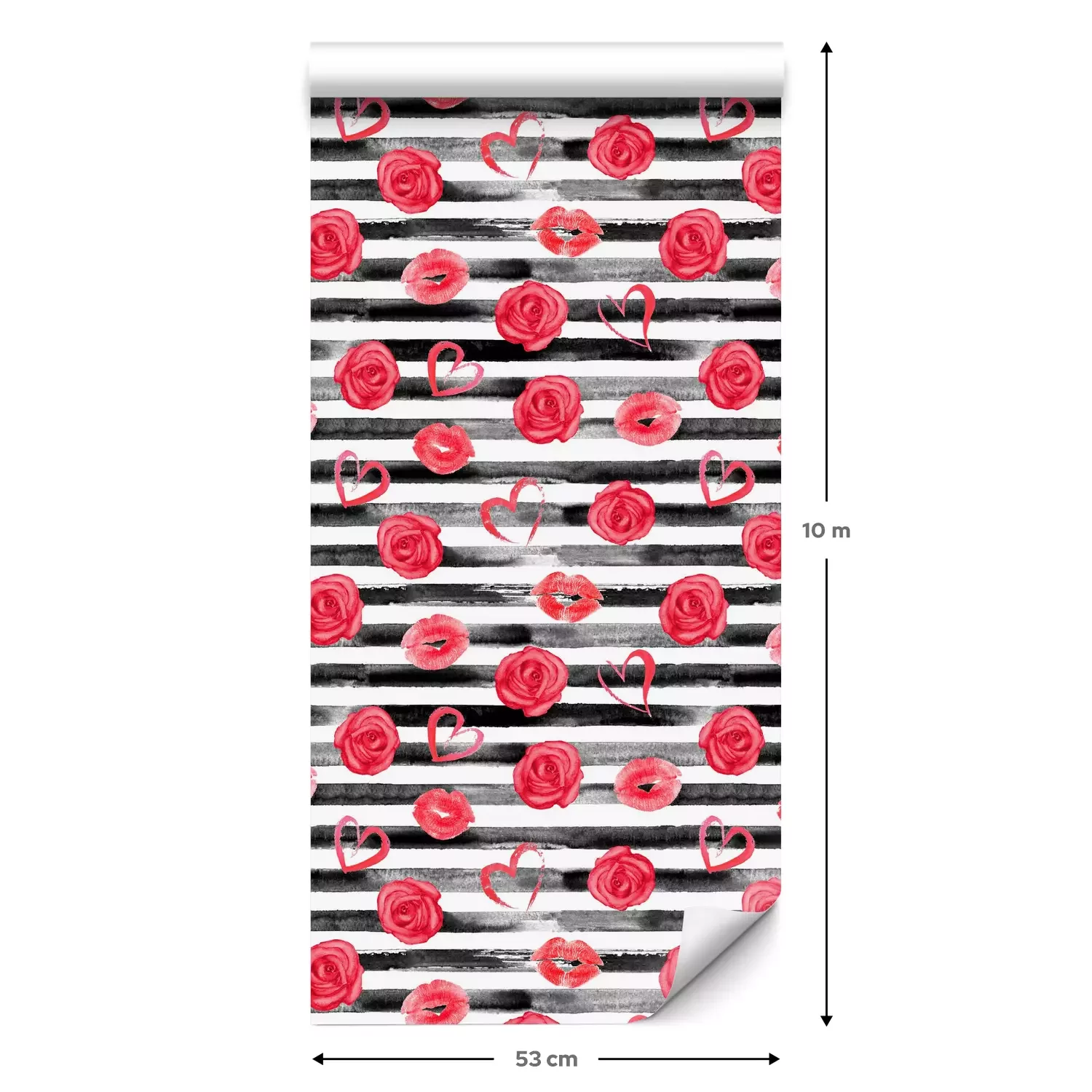 Een standaardrol behang heeft een afmeting van 0,53 m x 10 m, wat voldoende is om ongeveer 5 m² muur te bedekken.
