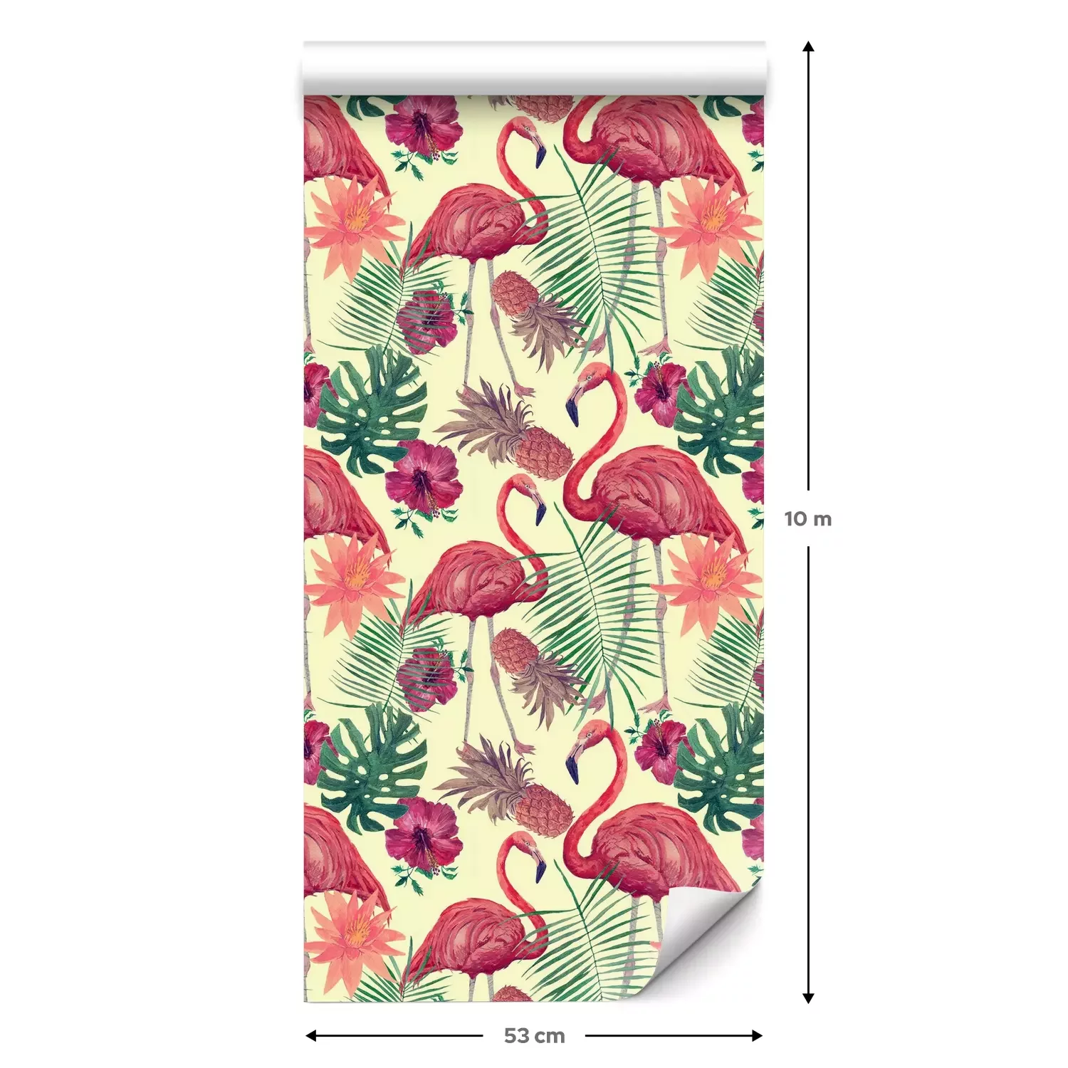 Een standaardrol behang heeft een afmeting van 0,53 m x 10 m, wat voldoende is om ongeveer 5 m² muur te bedekken.