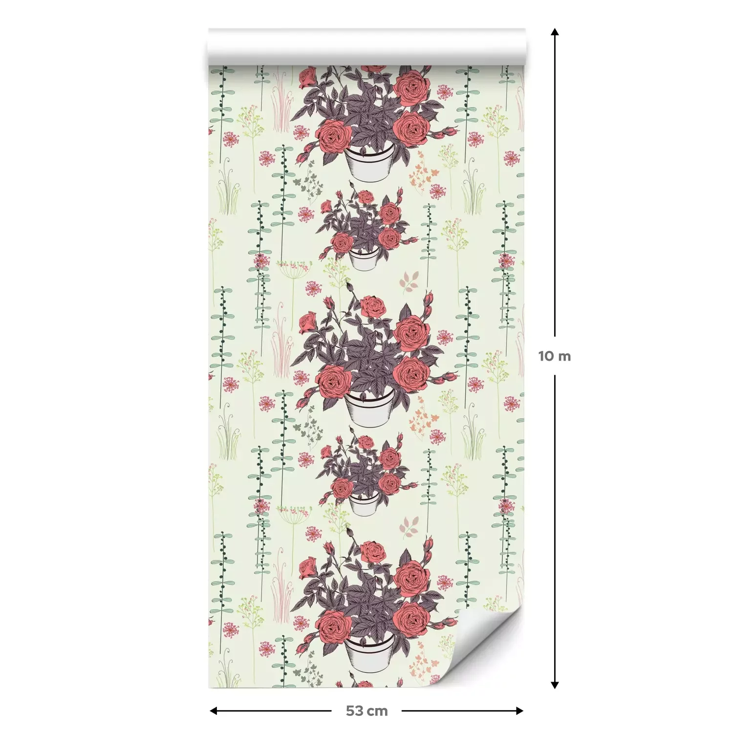Een standaardrol behang heeft een afmeting van 0,53 m x 10 m, wat voldoende is om ongeveer 5 m² muur te bedekken.