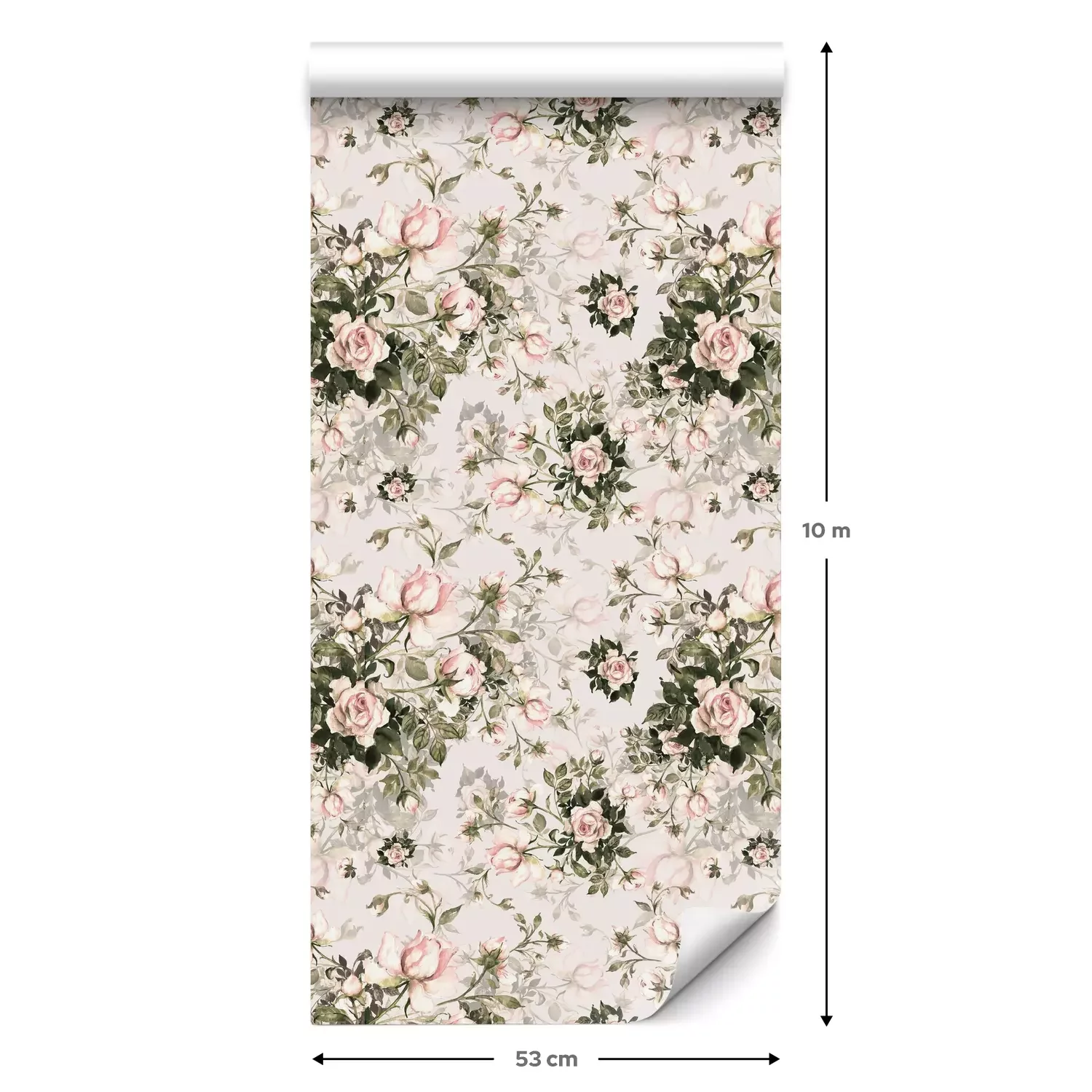 Een standaardrol behang heeft een afmeting van 0,53 m x 10 m, wat voldoende is om ongeveer 5 m² muur te bedekken.
