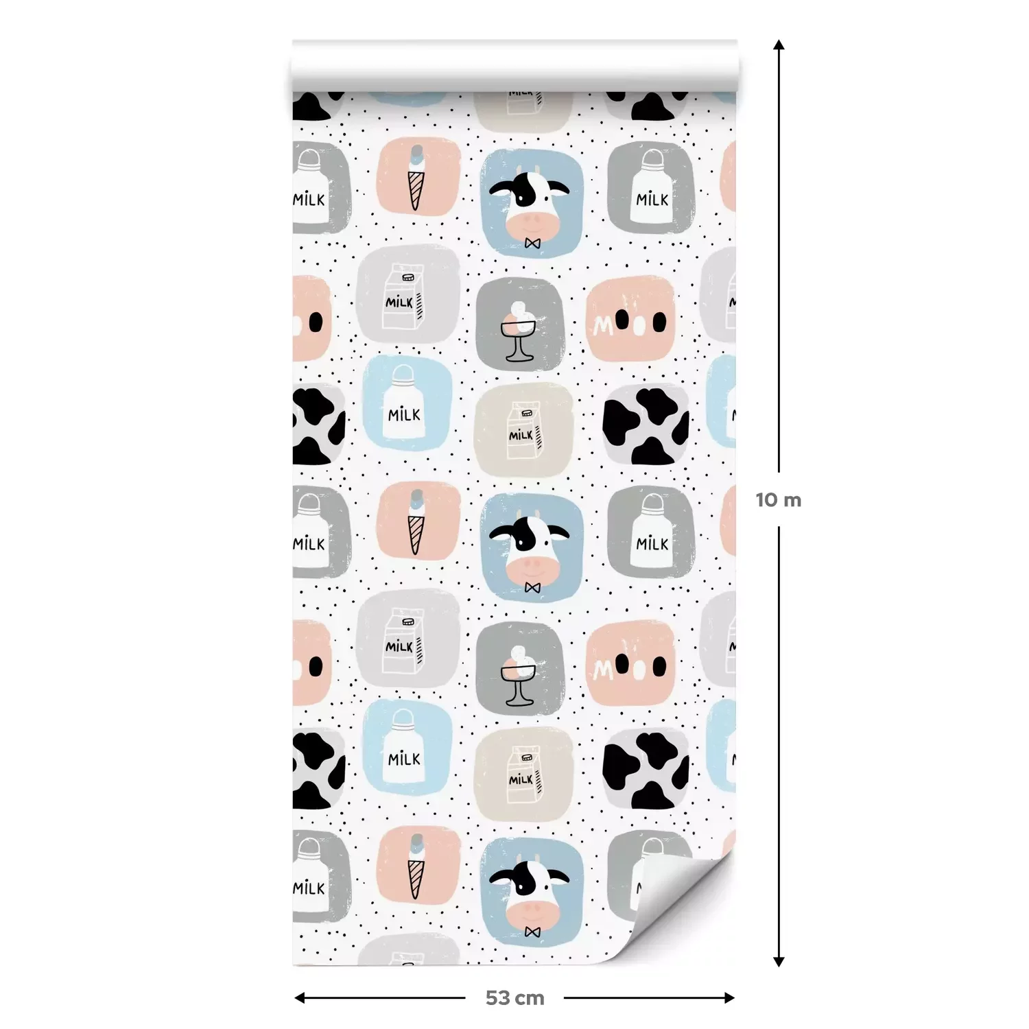 Een standaardrol behang heeft een afmeting van 0,53 m x 10 m, wat voldoende is om ongeveer 5 m² muur te bedekken.