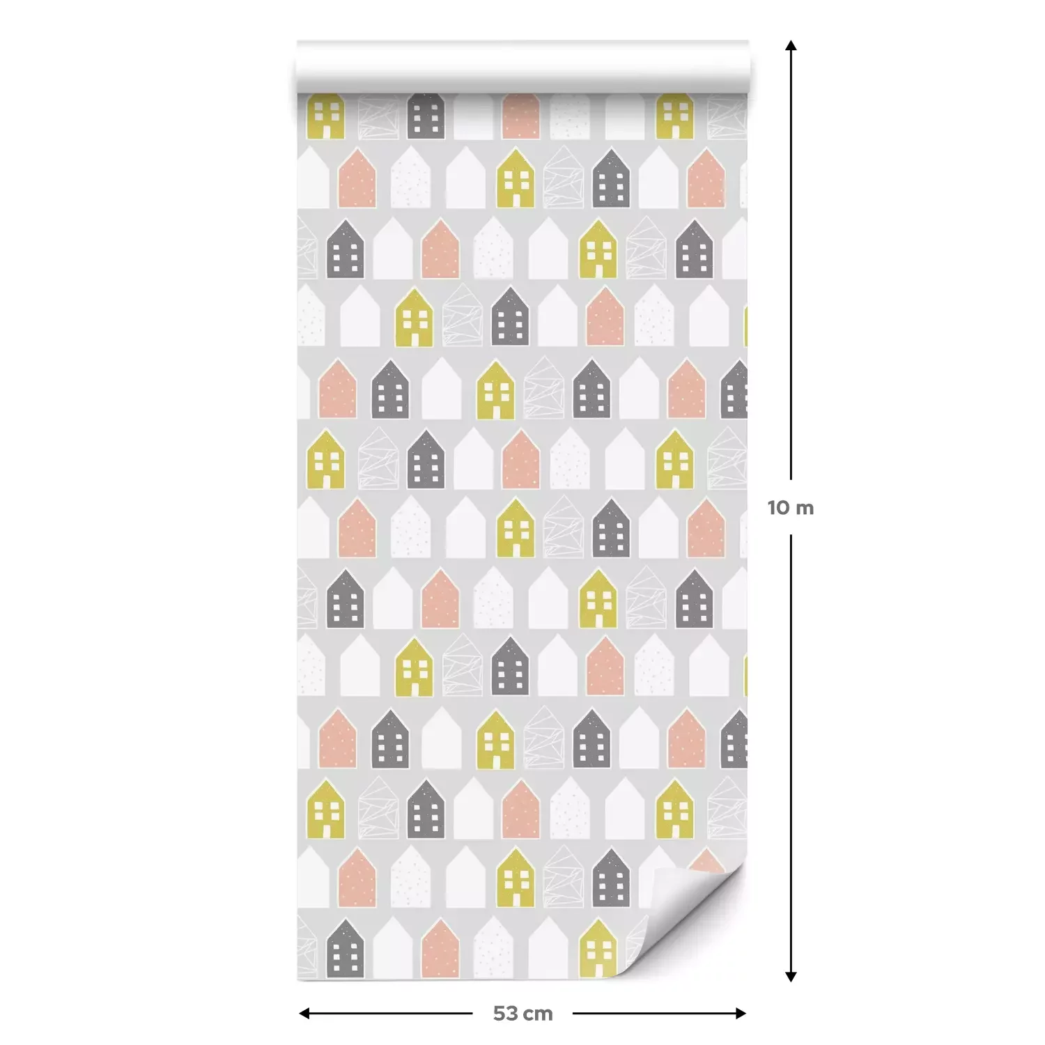 Een standaardrol behang heeft een afmeting van 0,53 m x 10 m, wat voldoende is om ongeveer 5 m² muur te bedekken.
