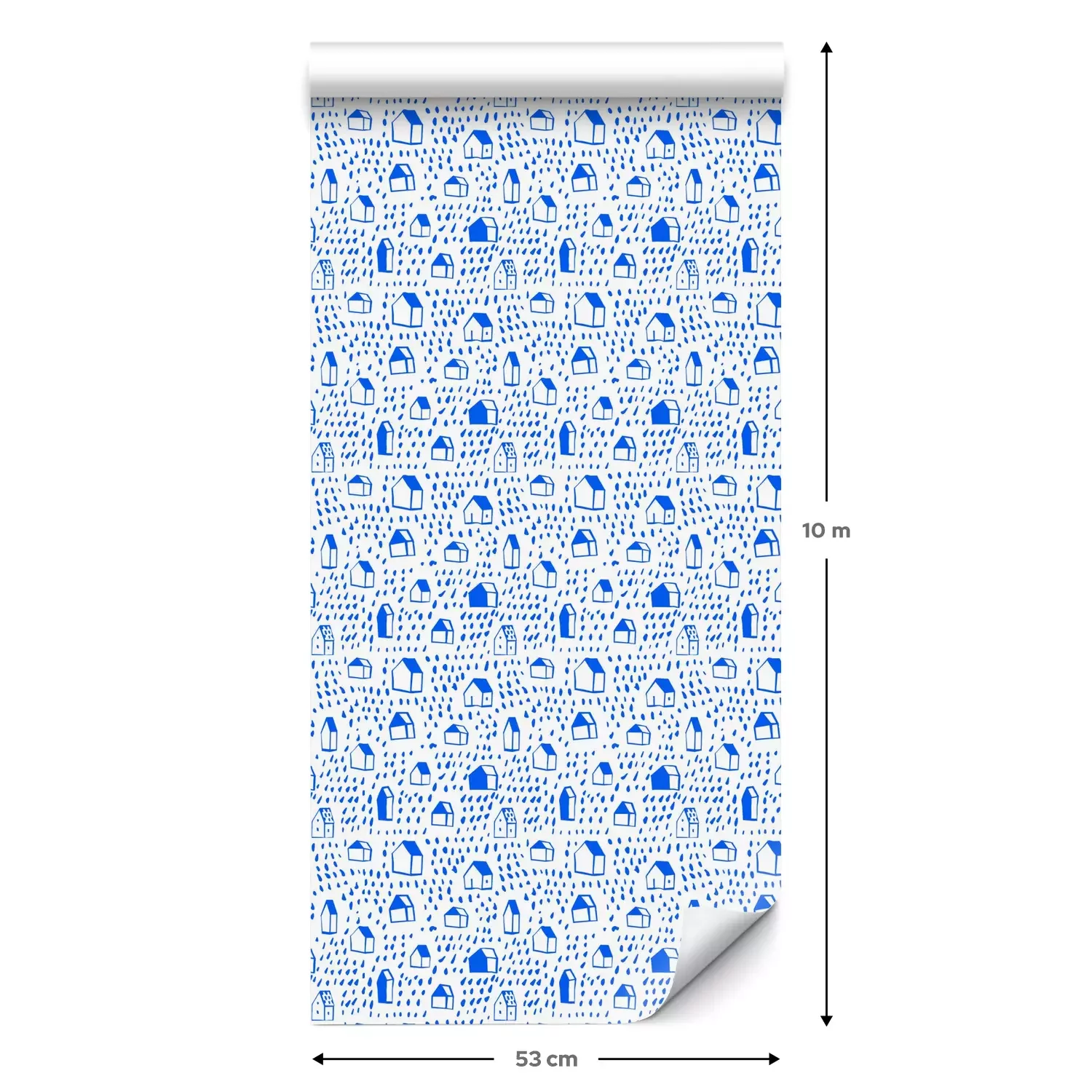 Een standaardrol behang heeft een afmeting van 0,53 m x 10 m, wat voldoende is om ongeveer 5 m² muur te bedekken.