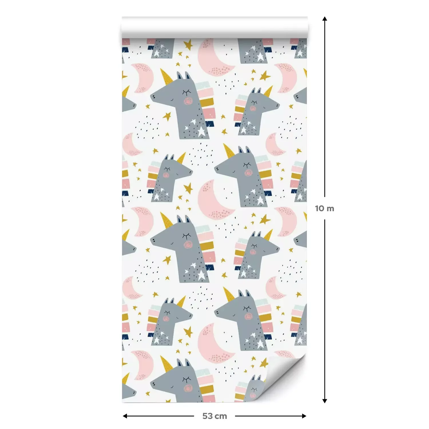 Een standaardrol behang heeft een afmeting van 0,53 m x 10 m, wat voldoende is om ongeveer 5 m² muur te bedekken.