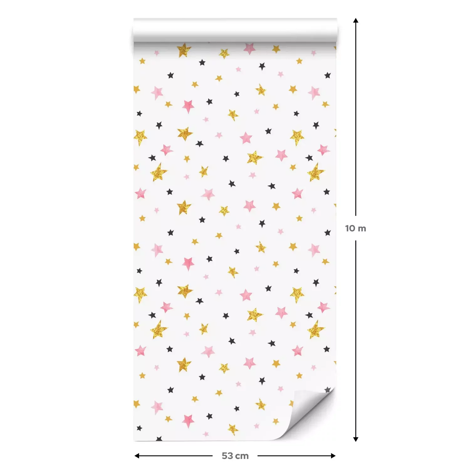 Een standaardrol behang heeft een afmeting van 0,53 m x 10 m, wat voldoende is om ongeveer 5 m² muur te bedekken.