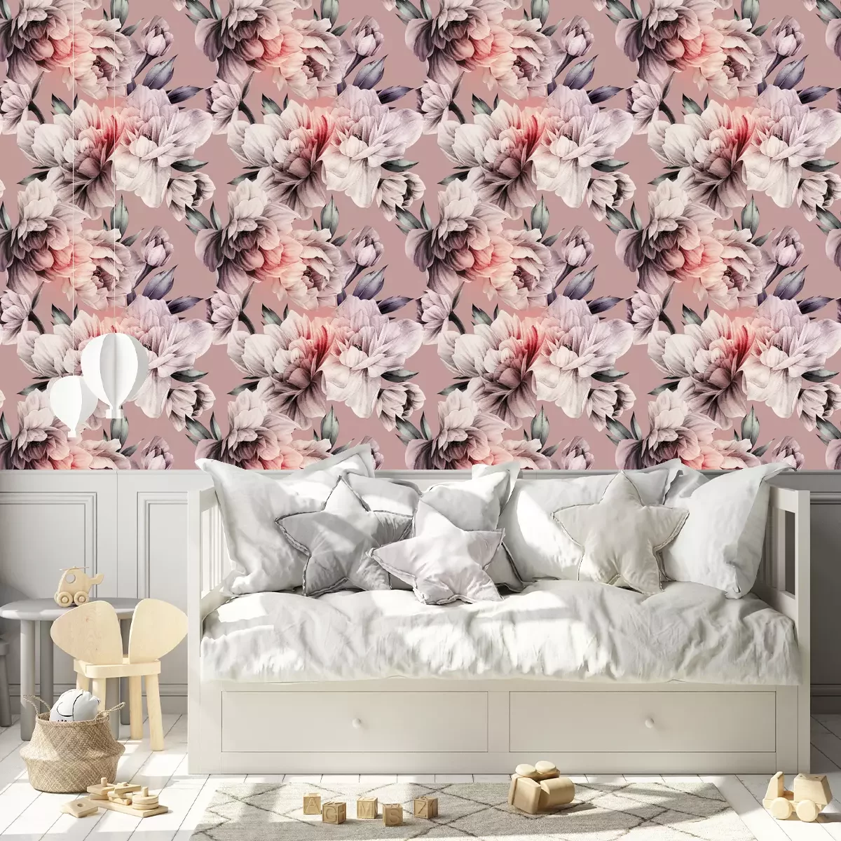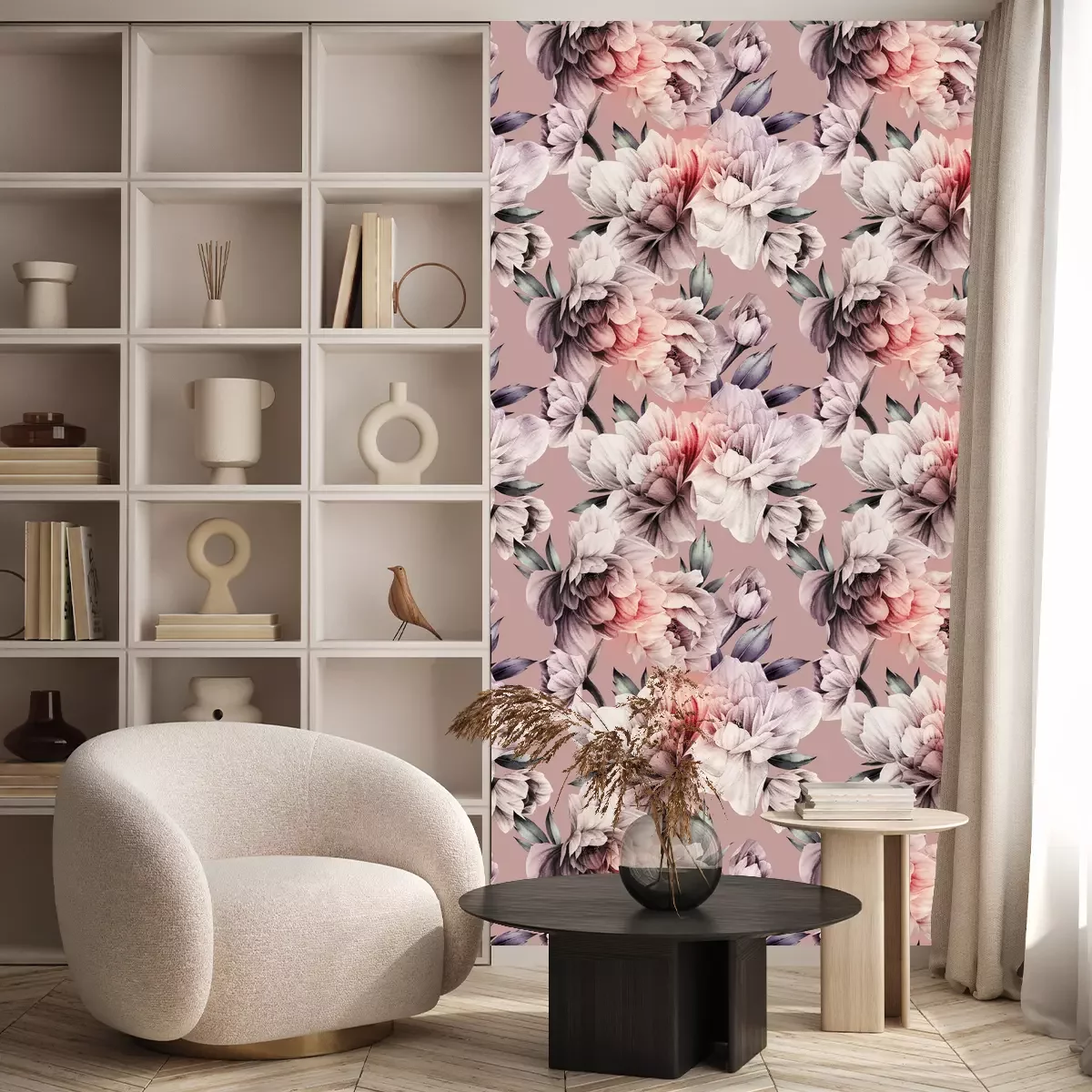 Patroon met lichte pioenrozenProbleemloze bezorging verzorgd door vertrouwde vervoerders