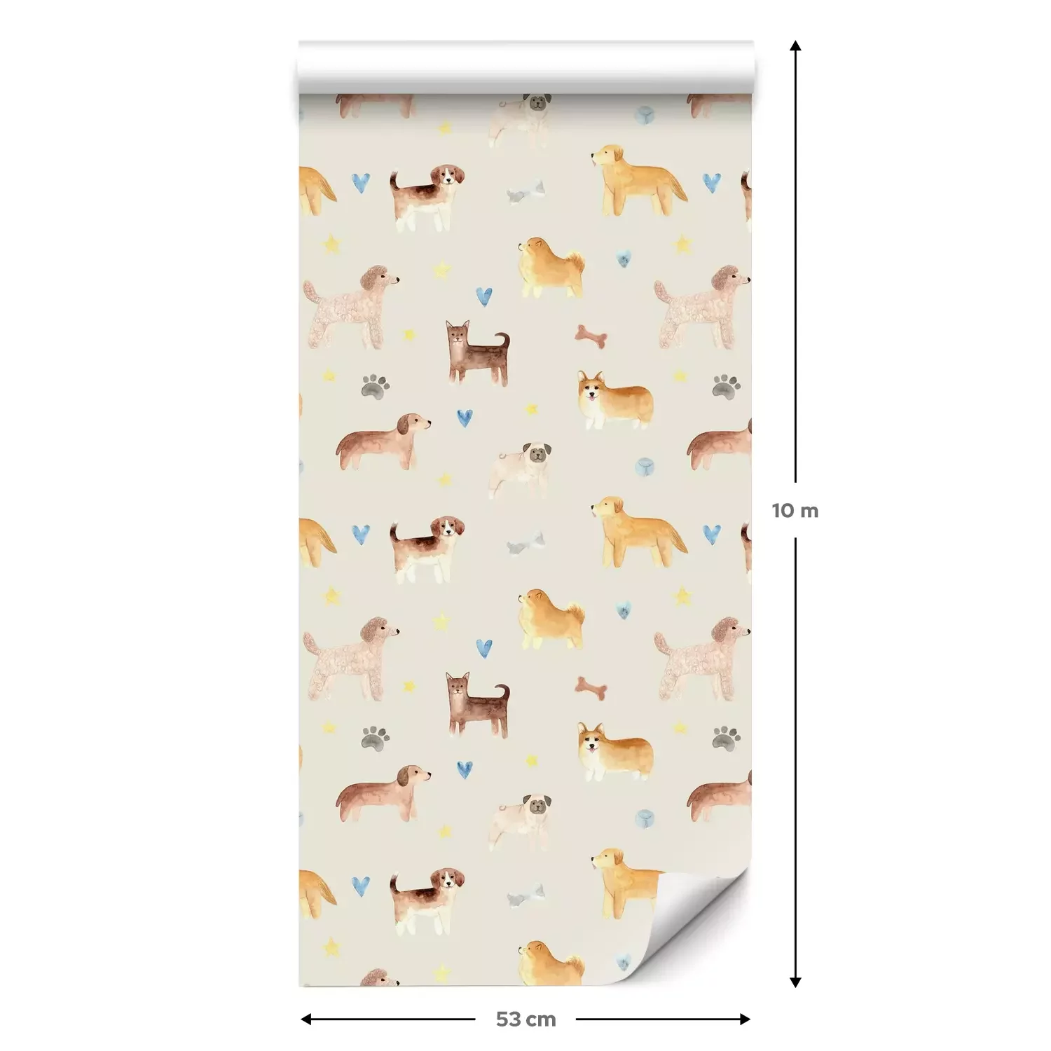 Een standaardrol behang heeft een afmeting van 0,53 m x 10 m, wat voldoende is om ongeveer 5 m² muur te bedekken.
