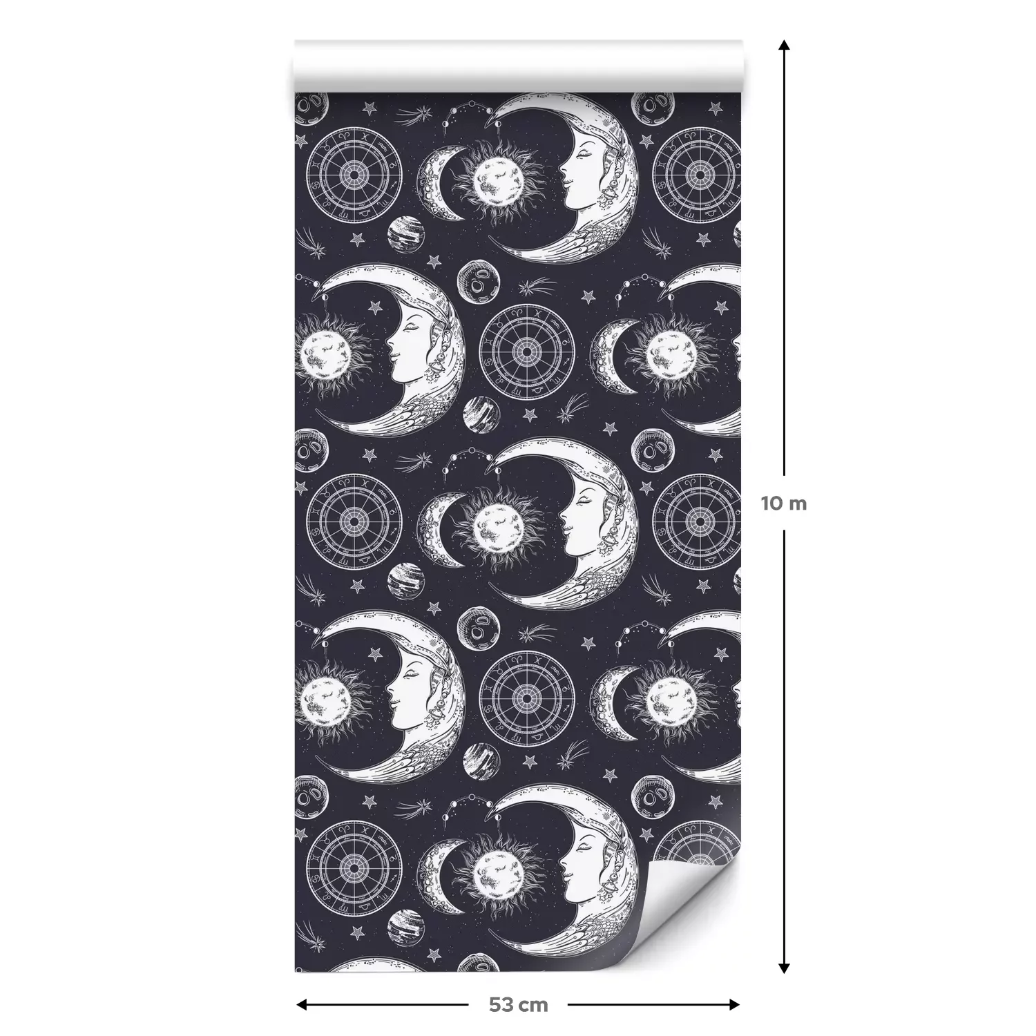 Een standaardrol behang heeft een afmeting van 0,53 m x 10 m, wat voldoende is om ongeveer 5 m² muur te bedekken.