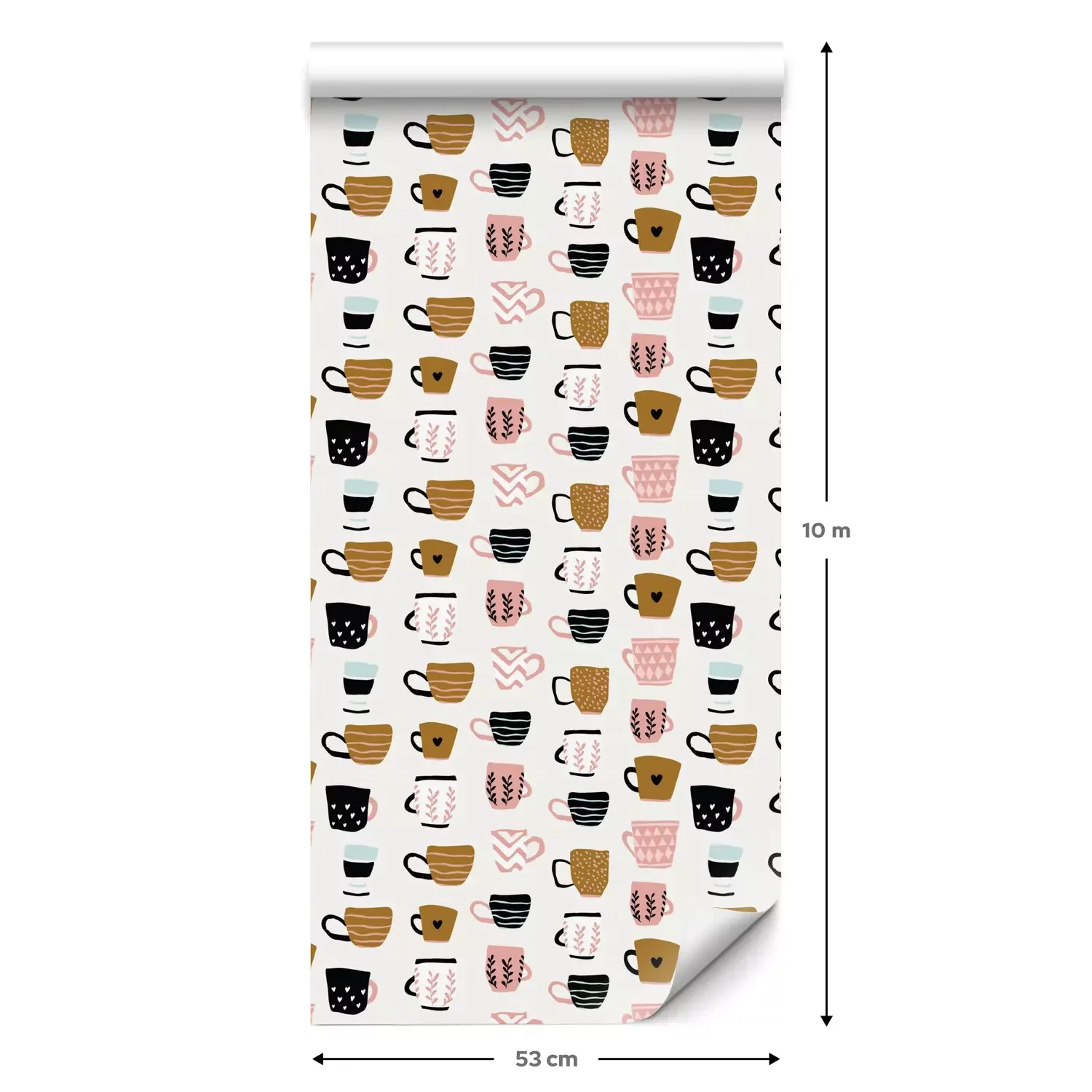 Een standaardrol behang heeft een afmeting van 0,53 m x 10 m, wat voldoende is om ongeveer 5 m² muur te bedekken.