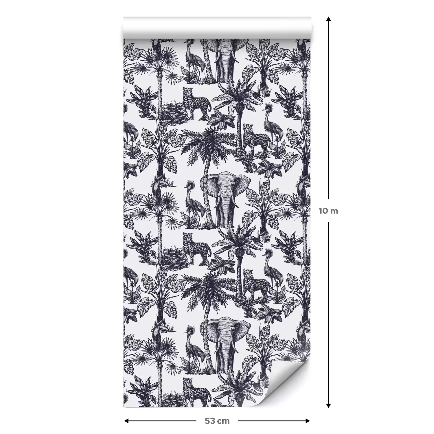 Een standaardrol behang heeft een afmeting van 0,53 m x 10 m, wat voldoende is om ongeveer 5 m² muur te bedekken.
