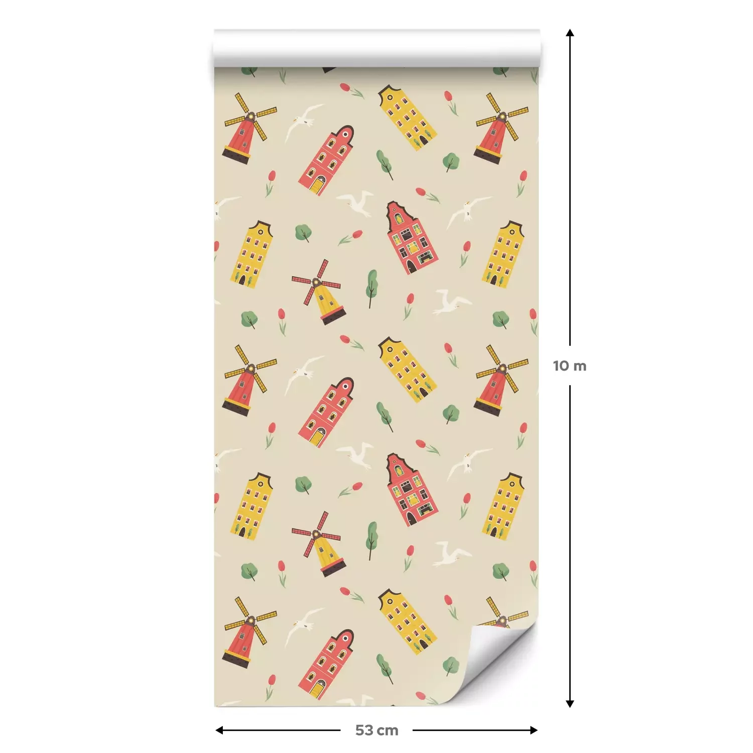 Een standaardrol behang heeft een afmeting van 0,53 m x 10 m, wat voldoende is om ongeveer 5 m² muur te bedekken.