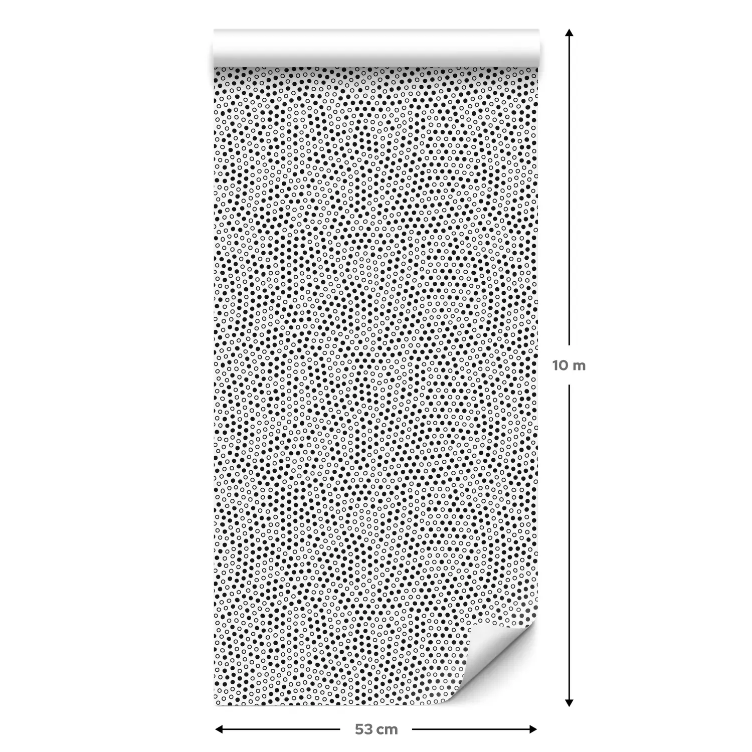Een standaardrol behang heeft een afmeting van 0,53 m x 10 m, wat voldoende is om ongeveer 5 m² muur te bedekken.