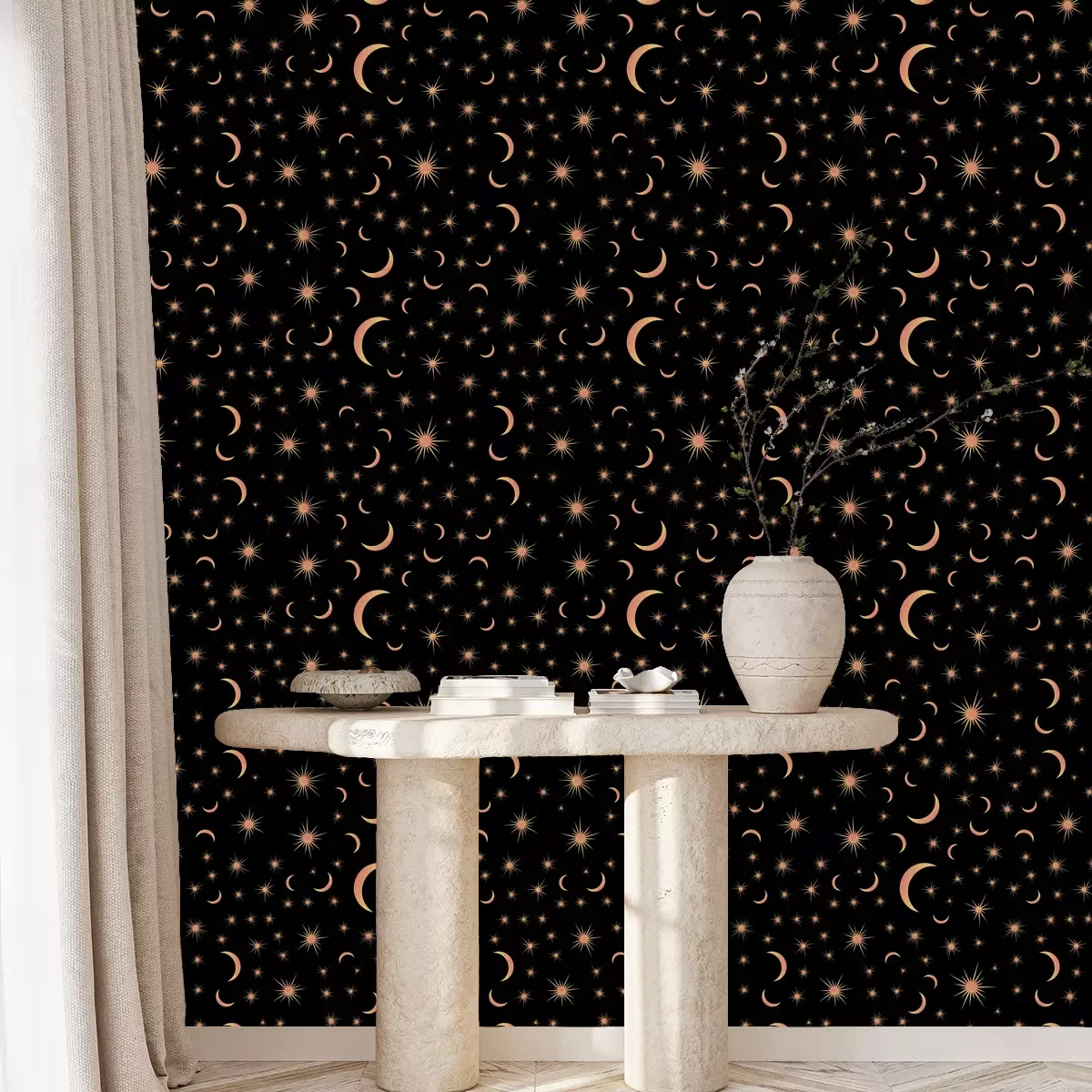 *Korting is niet van toepassing op lijmen, accessoires en cadeaubonnen.Het behang is gemaakt van hoogwaardig vliesmateriaal – duurzaam, stevig en eenvoudig aan te brengen. Op de productpagina vind je een gebruiksvriendelijke calculator die automatisch het aantal benodigde rollen berekent, zodat het winkelen nog makkelijker wordt. Het behang heeft een herhalend patroon dat we aanbieden in drie dichtheidsvarianten – normaal, gemiddeld en groot – waardoor je het motief perfect kunt afstemmen op de grootte van de ruimte. In onze winkel vind je duizenden ontwerpen, allemaal overzichtelijk ingedeeld in praktische categorieën.
