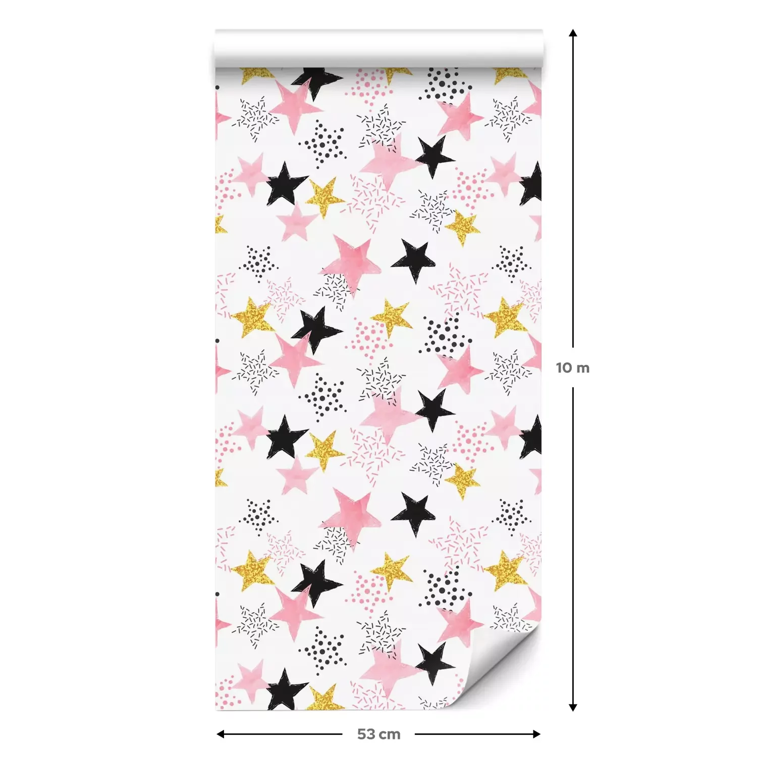 Een standaardrol behang heeft een afmeting van 0,53 m x 10 m, wat voldoende is om ongeveer 5 m² muur te bedekken.