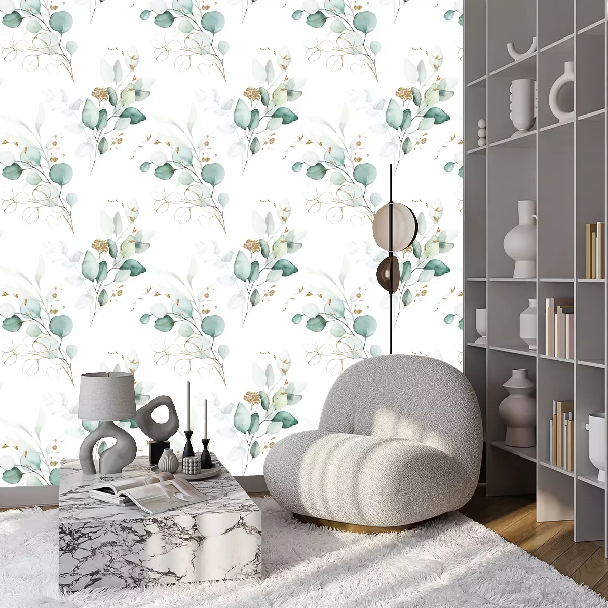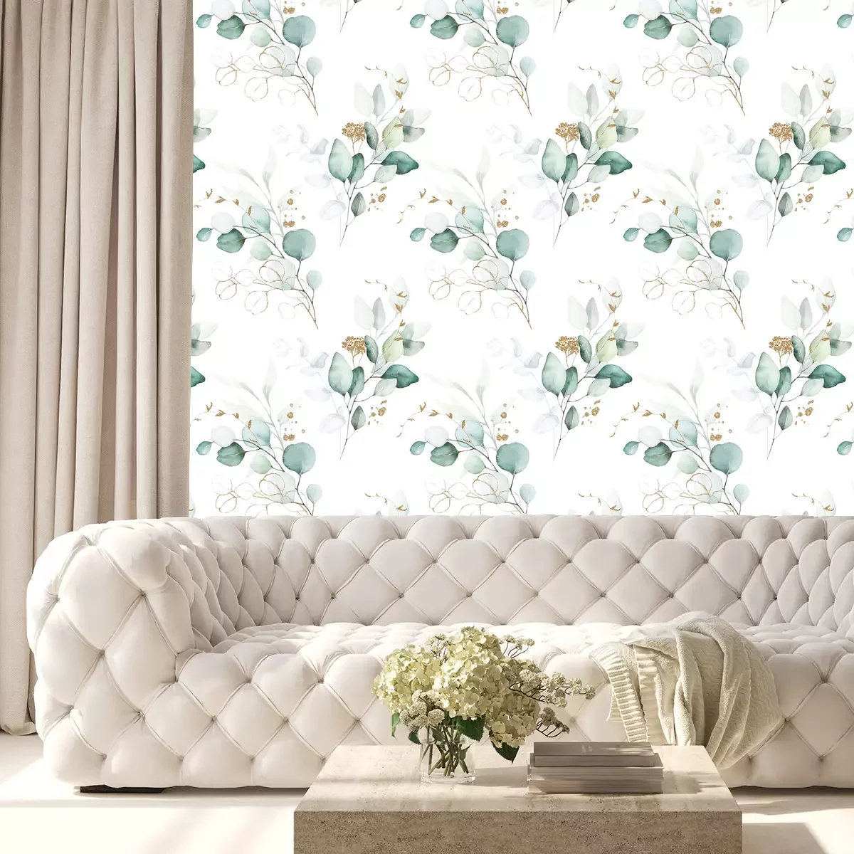 Eucalyptus planten geschilderd in aquarelFotobehang