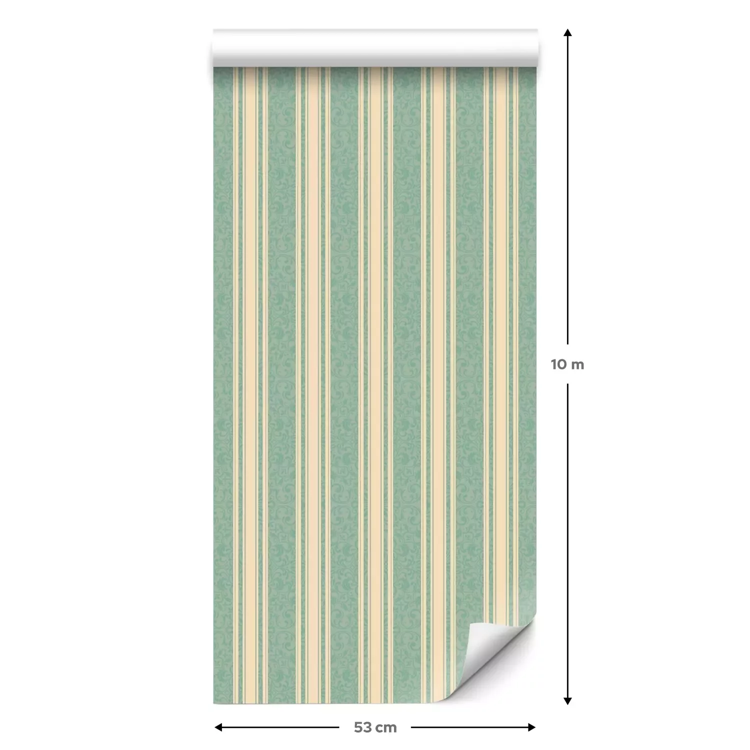 Een standaardrol behang heeft een afmeting van 0,53 m x 10 m, wat voldoende is om ongeveer 5 m² muur te bedekken.
