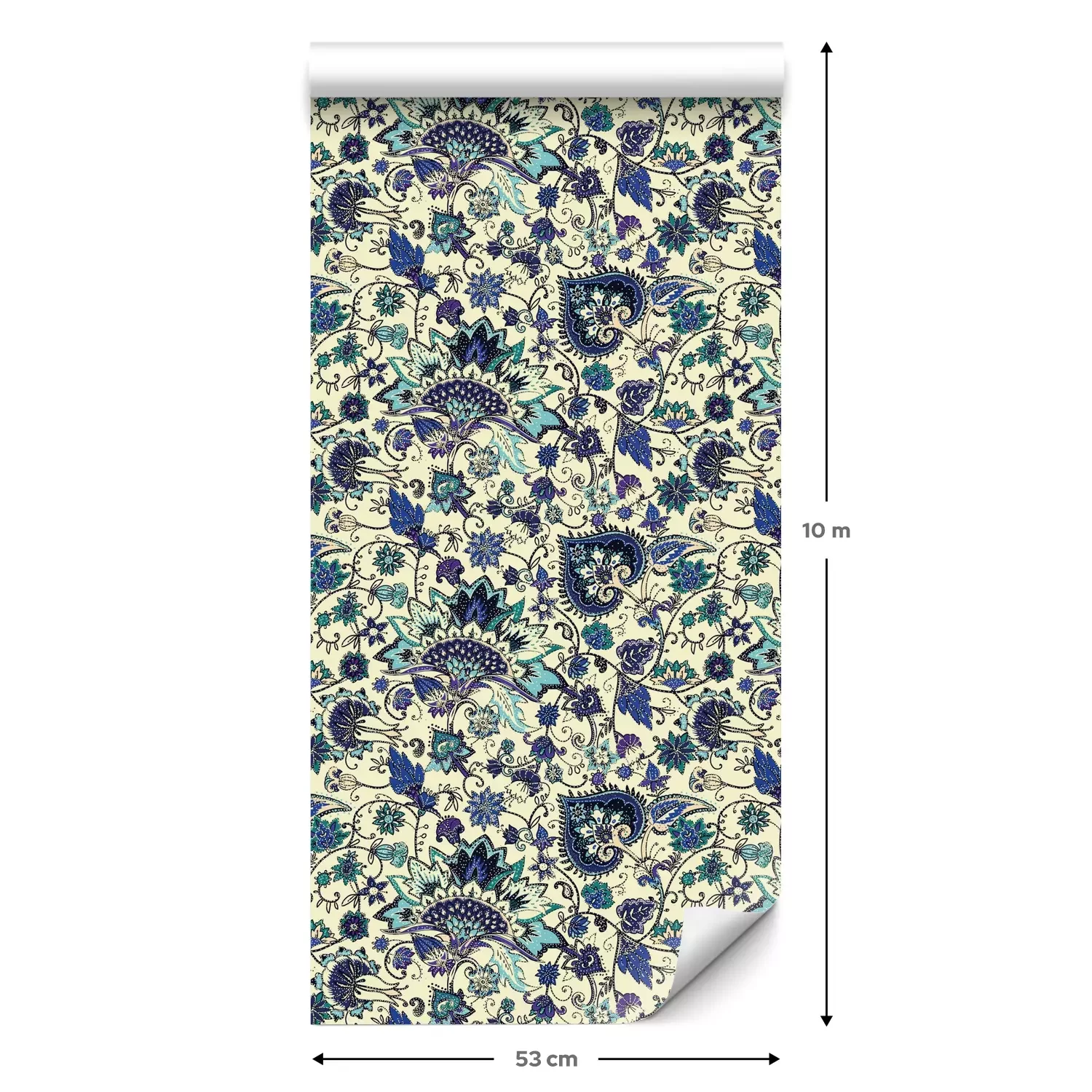 Een standaardrol behang heeft een afmeting van 0,53 m x 10 m, wat voldoende is om ongeveer 5 m² muur te bedekken.