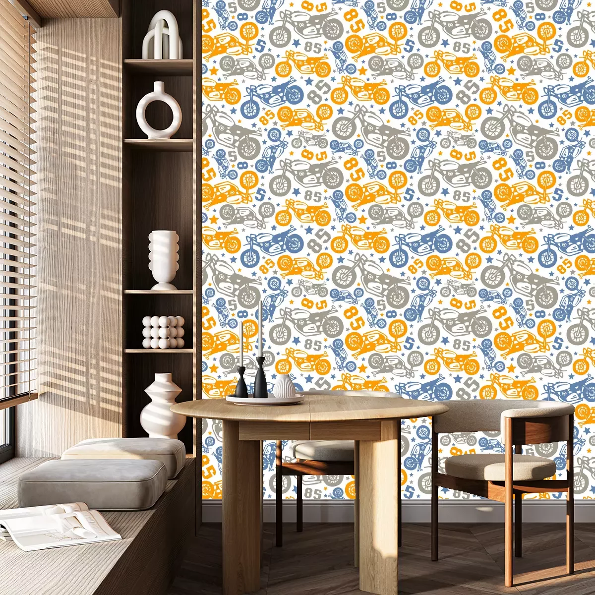*Korting is niet van toepassing op lijmen, accessoires en cadeaubonnen.Het behang is gemaakt van hoogwaardig vliesmateriaal – duurzaam, stevig en eenvoudig aan te brengen. Op de productpagina vind je een gebruiksvriendelijke calculator die automatisch het aantal benodigde rollen berekent, zodat het winkelen nog makkelijker wordt. Het behang heeft een herhalend patroon dat we aanbieden in drie dichtheidsvarianten – normaal, gemiddeld en groot – waardoor je het motief perfect kunt afstemmen op de grootte van de ruimte. In onze winkel vind je duizenden ontwerpen, allemaal overzichtelijk ingedeeld in praktische categorieën.