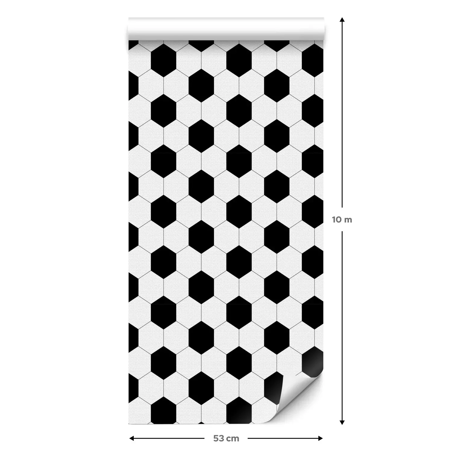 Een standaardrol behang heeft een afmeting van 0,53 m x 10 m, wat voldoende is om ongeveer 5 m² muur te bedekken.