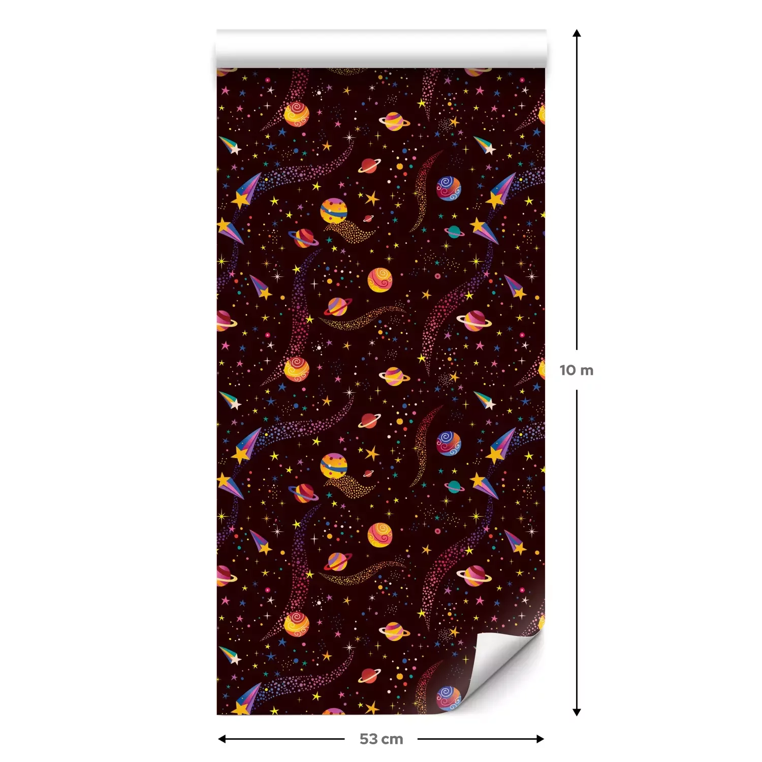 Een standaardrol behang heeft een afmeting van 0,53 m x 10 m, wat voldoende is om ongeveer 5 m² muur te bedekken.