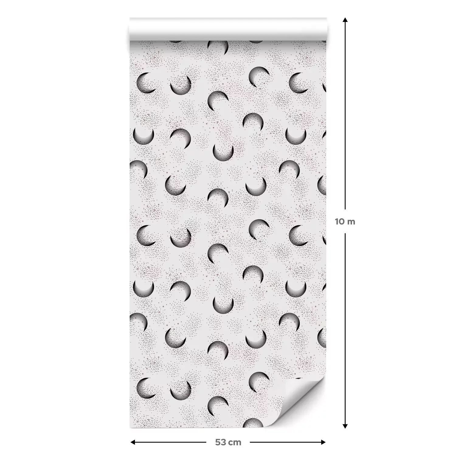 Een standaardrol behang heeft een afmeting van 0,53 m x 10 m, wat voldoende is om ongeveer 5 m² muur te bedekken.