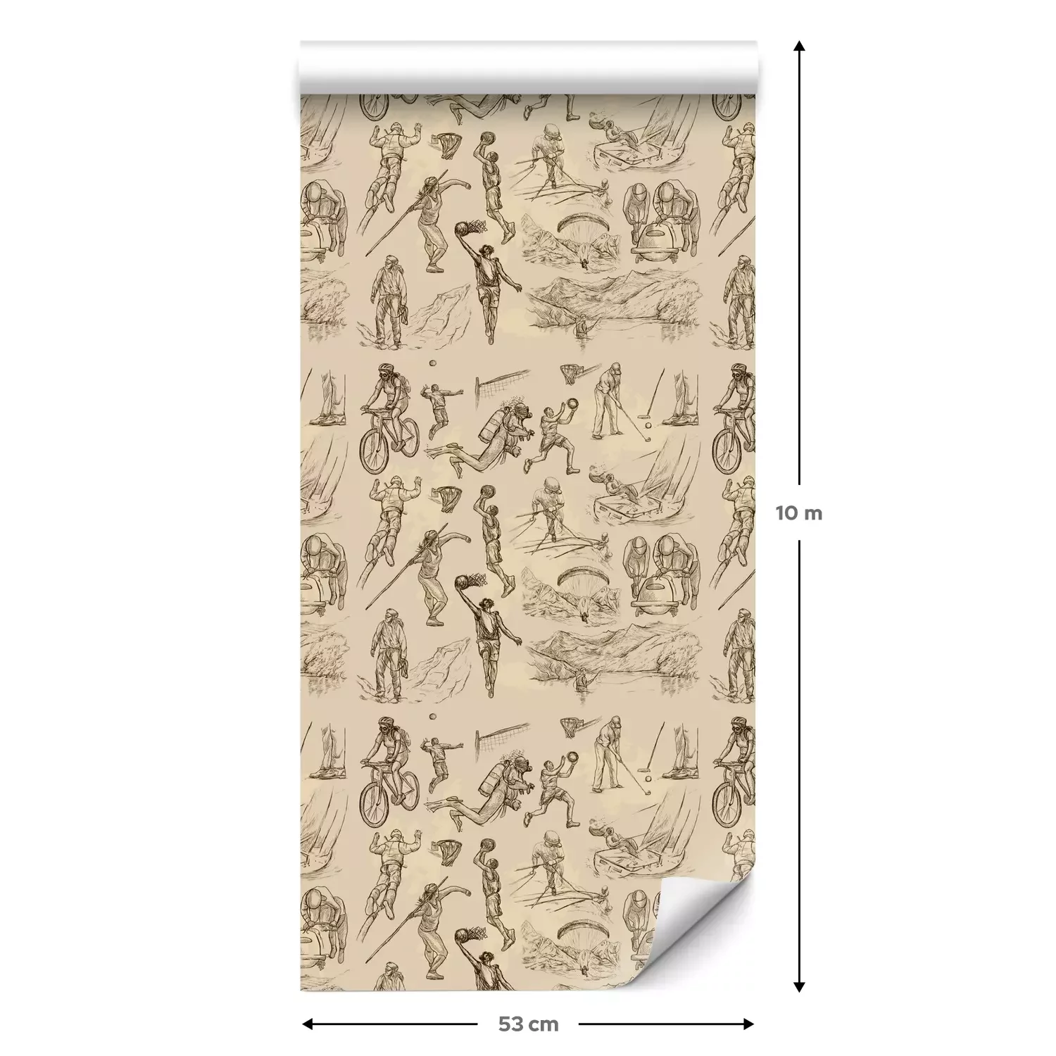 Een standaardrol behang heeft een afmeting van 0,53 m x 10 m, wat voldoende is om ongeveer 5 m² muur te bedekken.