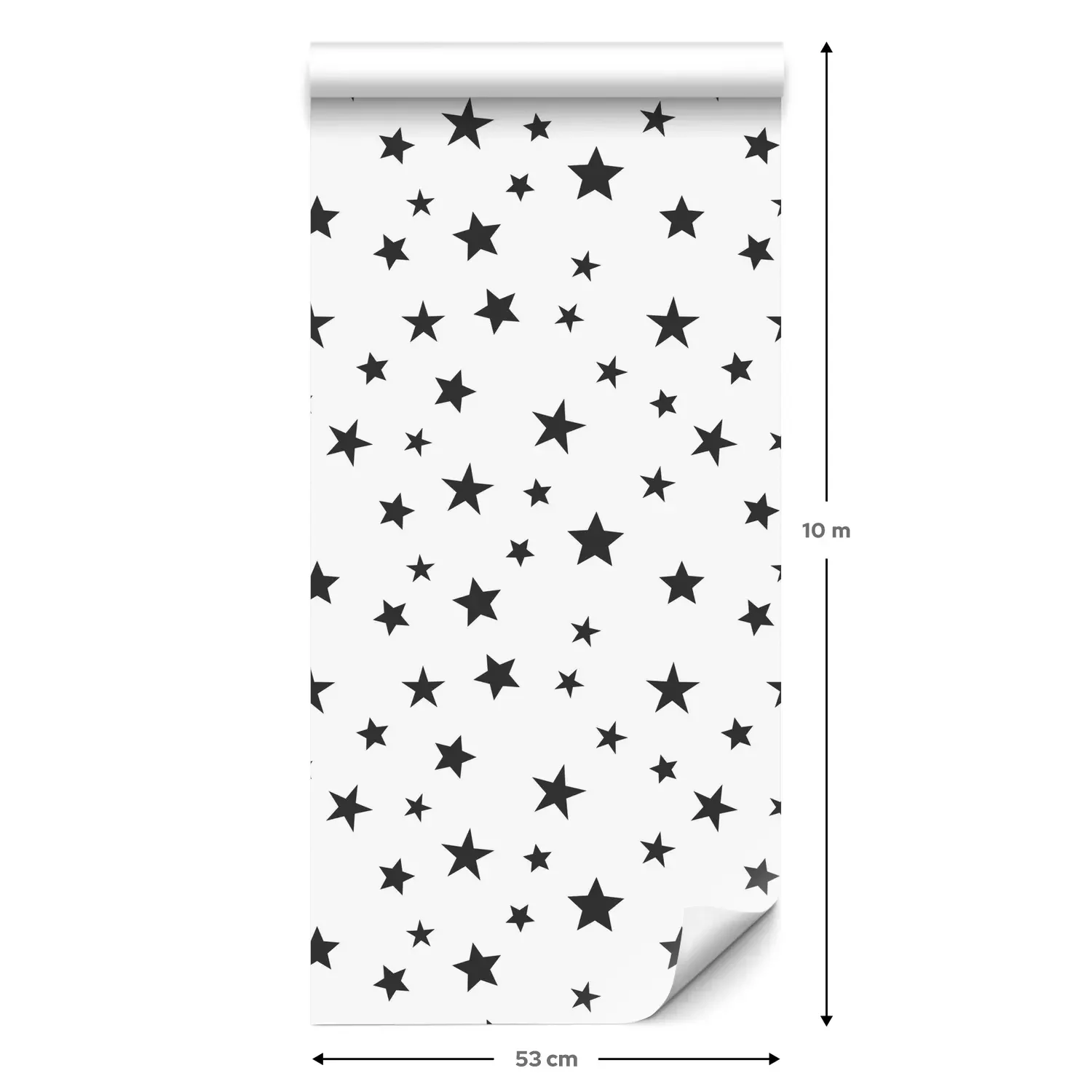 Een standaardrol behang heeft een afmeting van 0,53 m x 10 m, wat voldoende is om ongeveer 5 m² muur te bedekken.