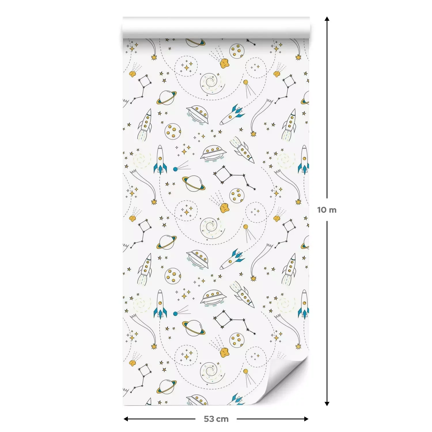 Een standaardrol behang heeft een afmeting van 0,53 m x 10 m, wat voldoende is om ongeveer 5 m² muur te bedekken.