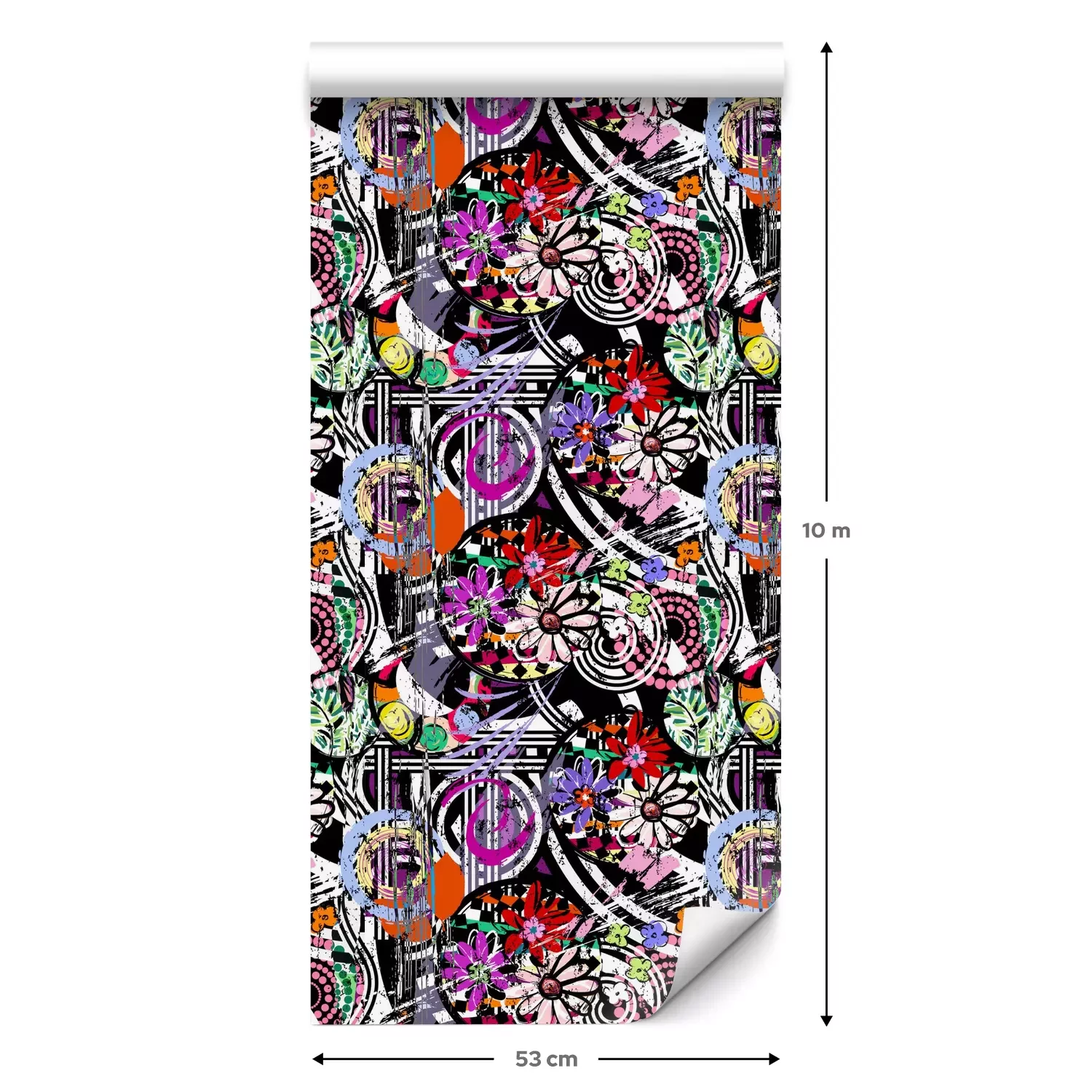 Een standaardrol behang heeft een afmeting van 0,53 m x 10 m, wat voldoende is om ongeveer 5 m² muur te bedekken.