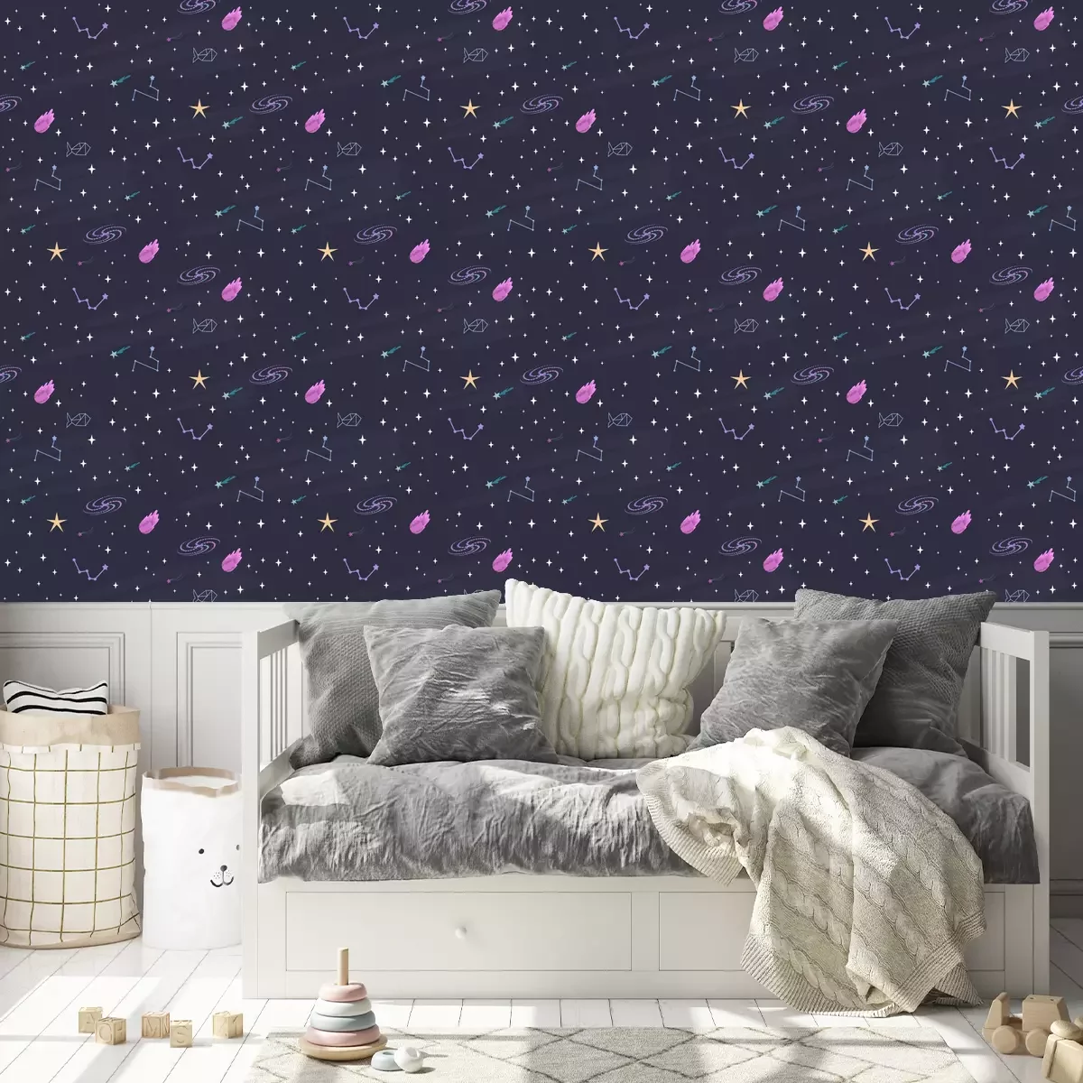 *Korting is niet van toepassing op lijmen, accessoires en cadeaubonnen.Het behang is gemaakt van hoogwaardig vliesmateriaal – duurzaam, stevig en eenvoudig aan te brengen. Op de productpagina vind je een gebruiksvriendelijke calculator die automatisch het aantal benodigde rollen berekent, zodat het winkelen nog makkelijker wordt. Het behang heeft een herhalend patroon dat we aanbieden in drie dichtheidsvarianten – normaal, gemiddeld en groot – waardoor je het motief perfect kunt afstemmen op de grootte van de ruimte. In onze winkel vind je duizenden ontwerpen, allemaal overzichtelijk ingedeeld in praktische categorieën.