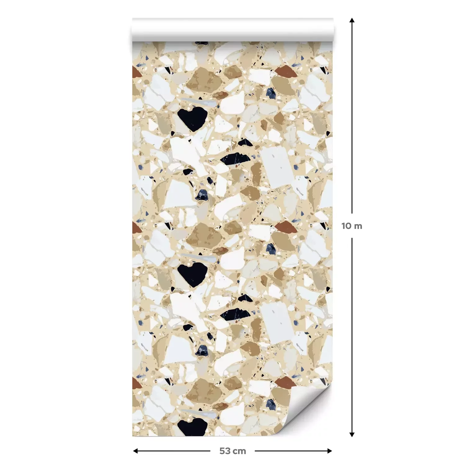 Een standaardrol behang heeft een afmeting van 0,53 m x 10 m, wat voldoende is om ongeveer 5 m² muur te bedekken.
